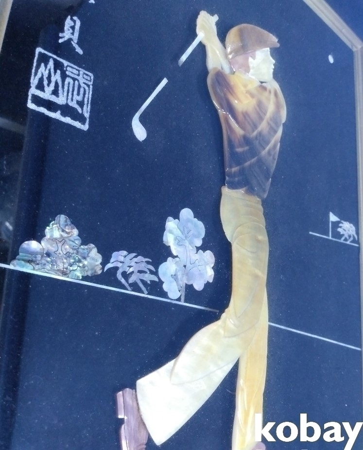 자개로 골프를 치는 남성을 형상화 했습니다.