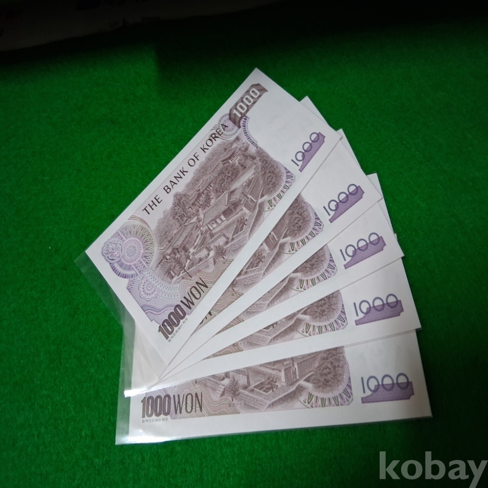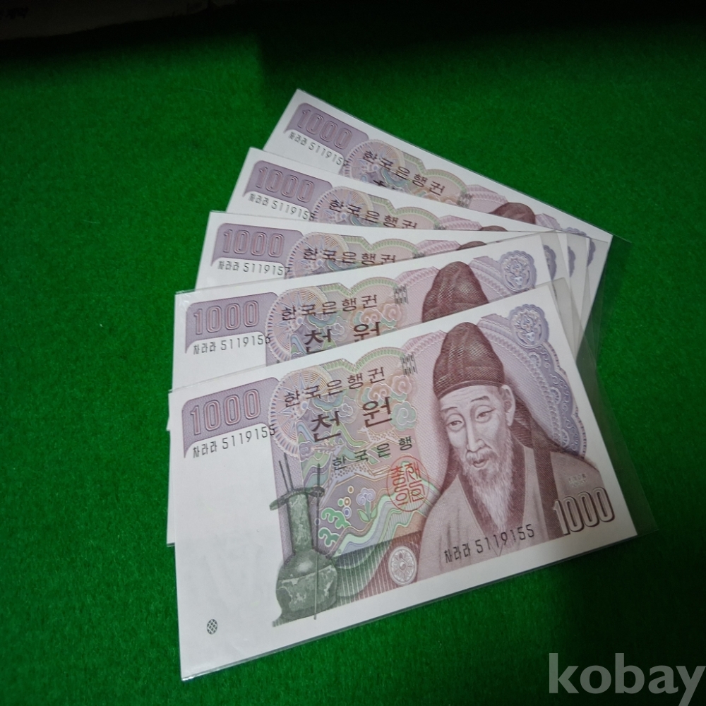 한국은행 2차1000원 51포인트양성기호 연번호5매 미사용