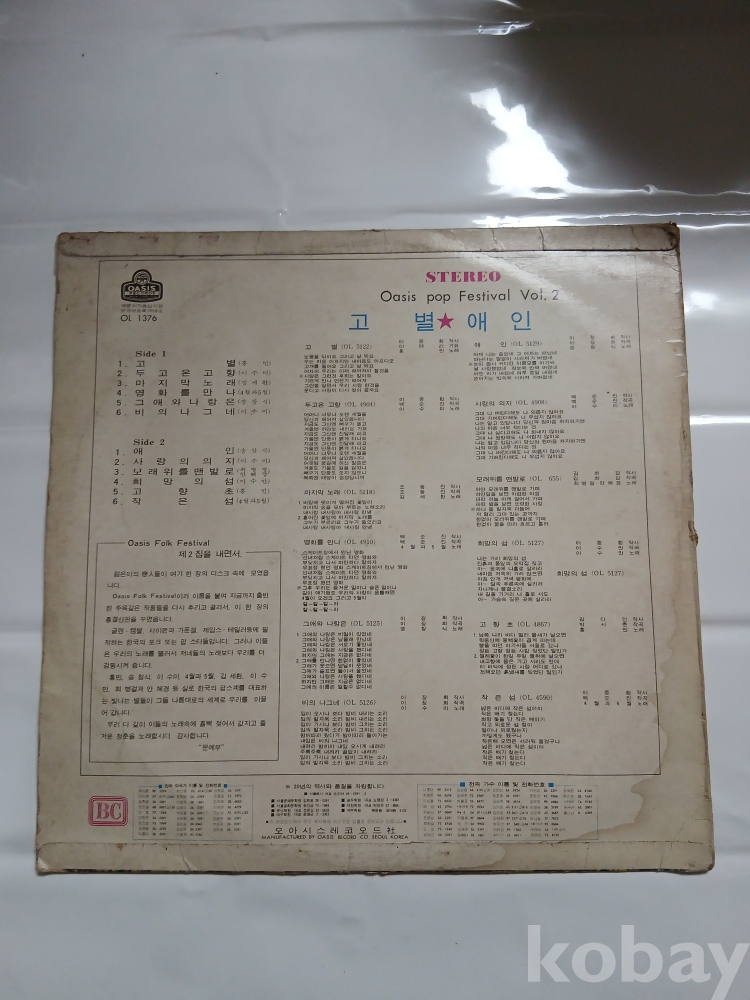 | 자켓상태 | VG : 주름, 접힘, 모서리 찢김 다수 | 음반상태 | VG : 생활 기스 다수, 가벼운 노이즈 존재 | 발매정보 | 초반 | 가사지여부 | 무 |