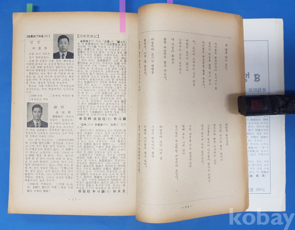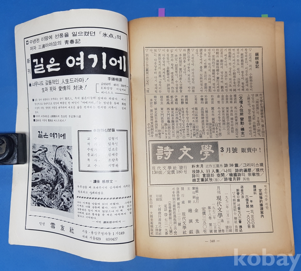 ▶朴斗鎭의 글 “詩推薦後記”가 실린 現代文學 1972년 3월호, 월간 현대문학,348쪽
