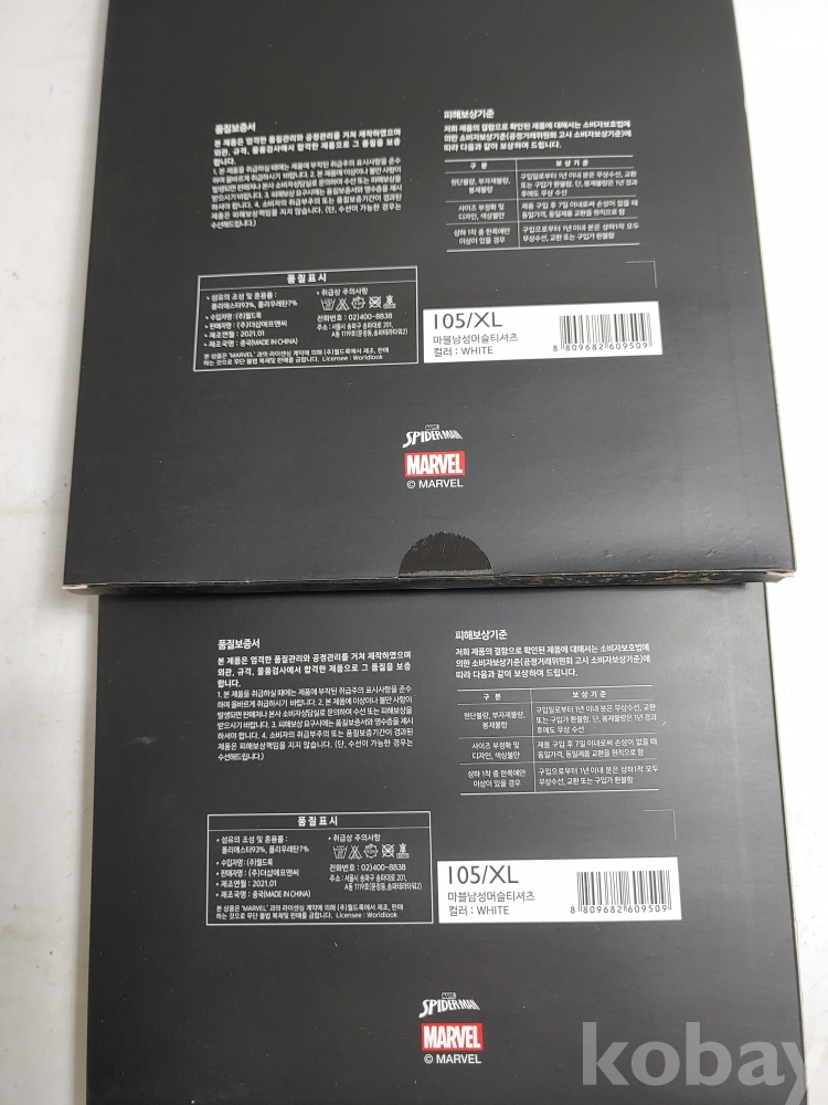 ★천원출발★ L-4-123 마블캐릭터 남성 머슬 흰색 티셔츠 2개
