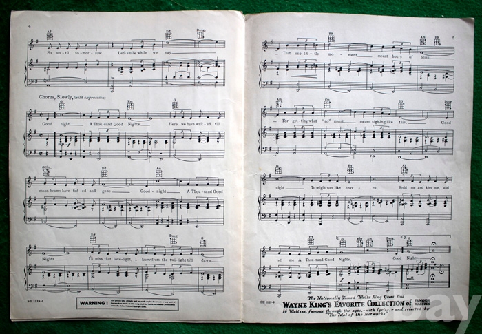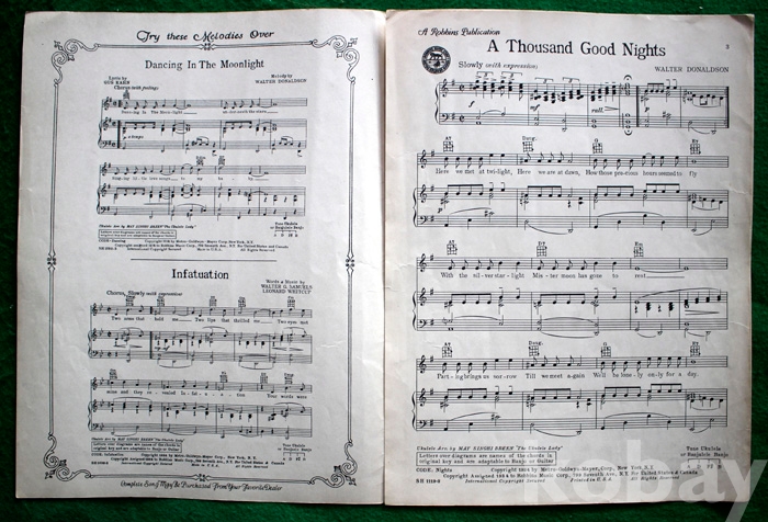 (오래된 피아노 악보) A thousand good nights - 1934년. 미국발행...