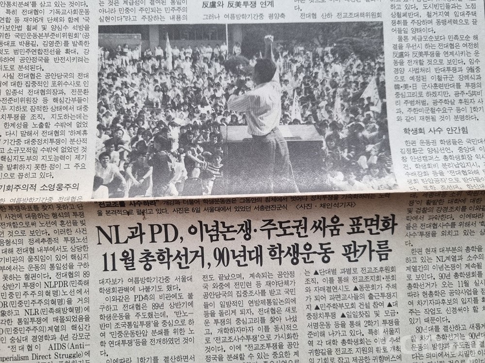 "NL과 PD, 이념논쟁·주도권 싸움 표면화": 90년대 학생운동의 방향을 가를 11월 총학생회 선거와 정파 간의 갈등 분석.