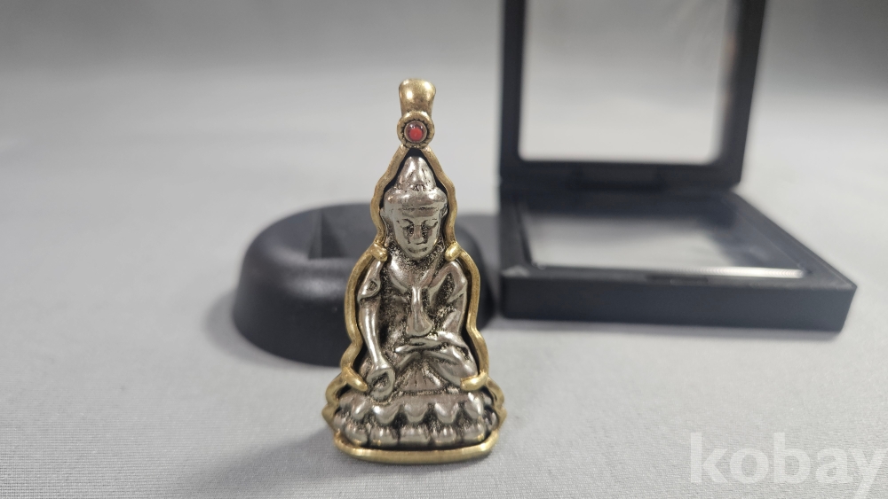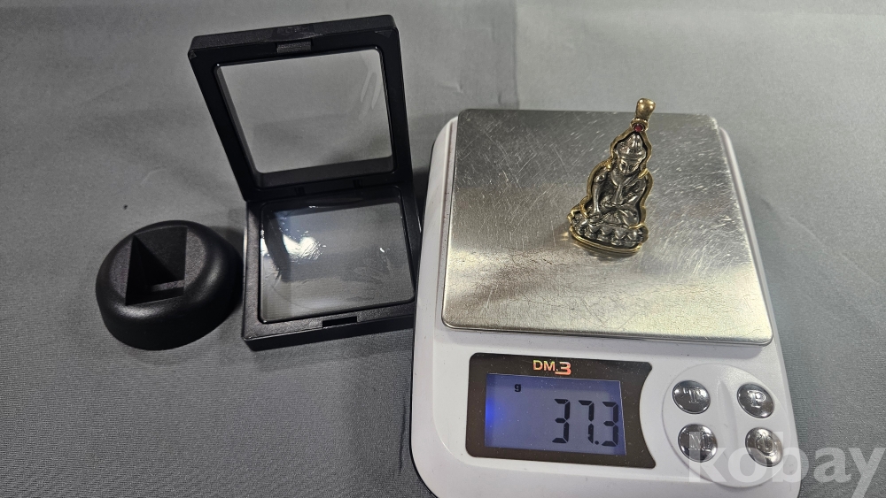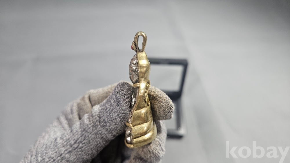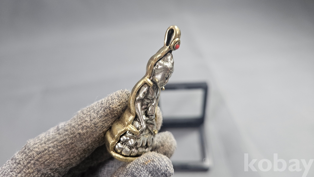 놋쇠재질의 틀 안에 들어있는 호신불 목걸이 입니다.