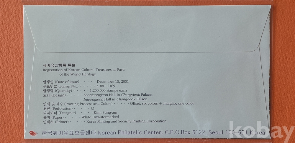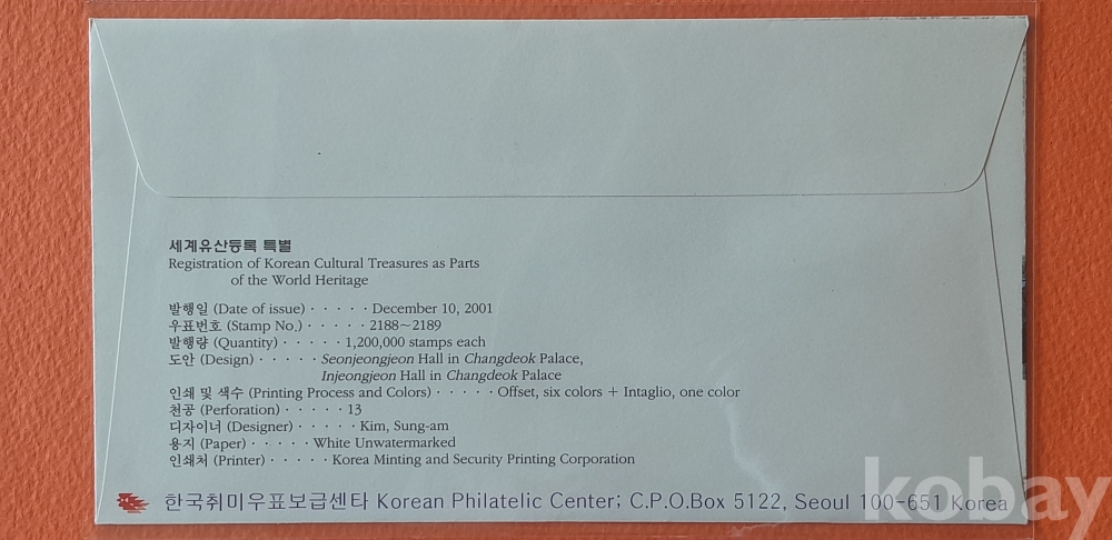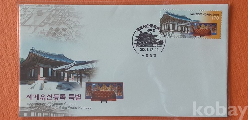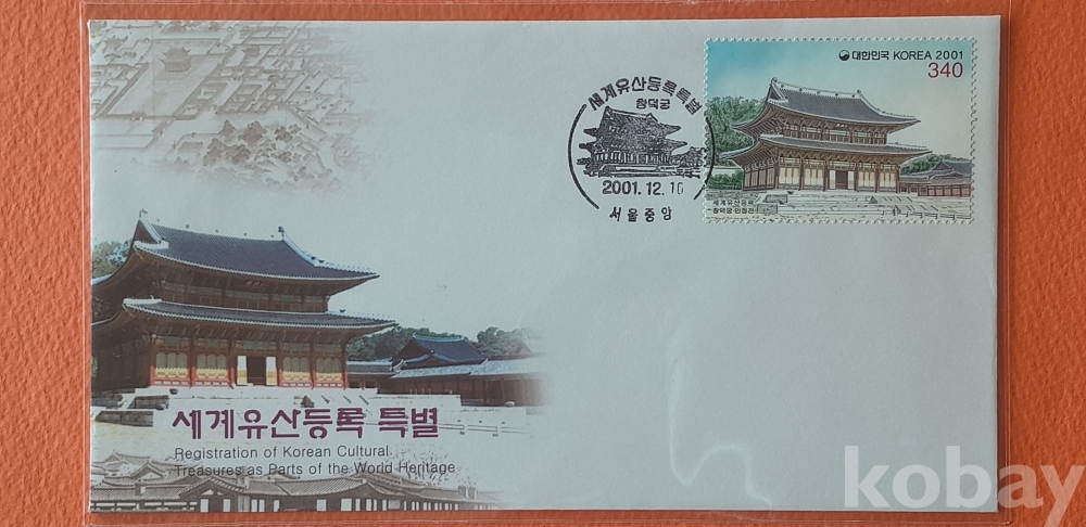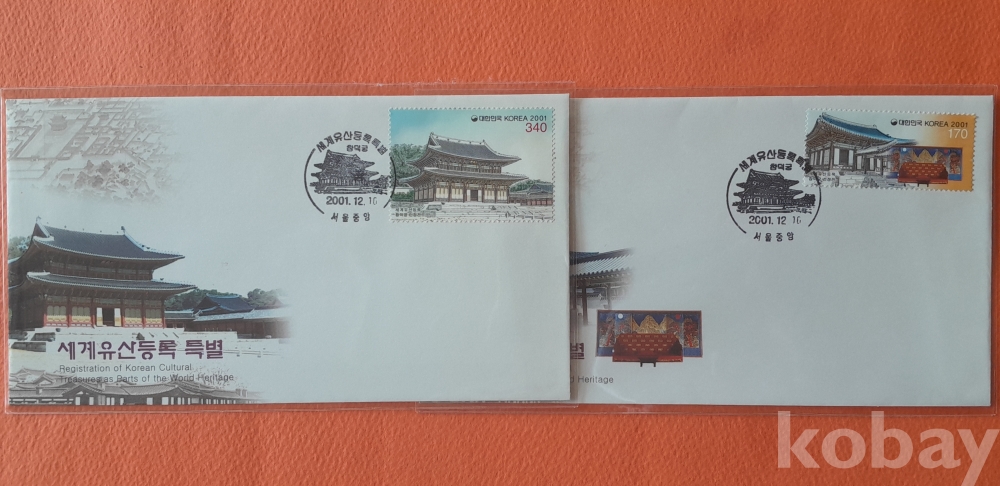 2001년 발행 세계유산등록특별 초일봉피 2종 입니다.
