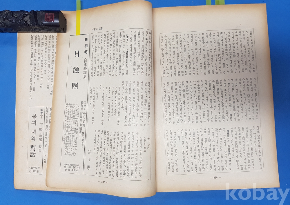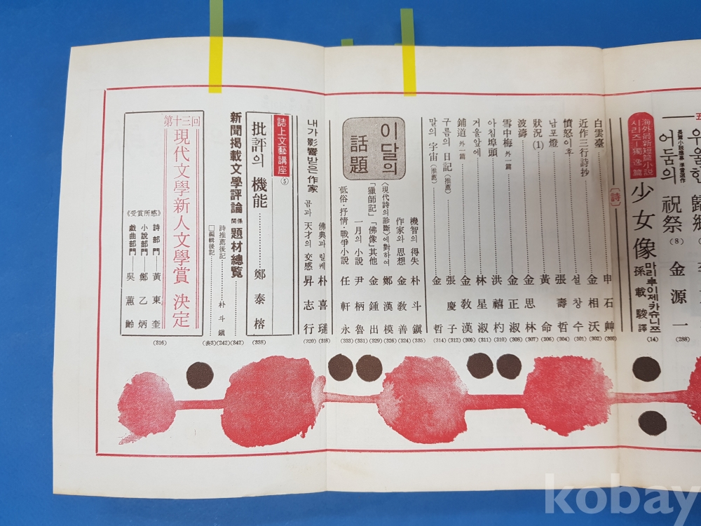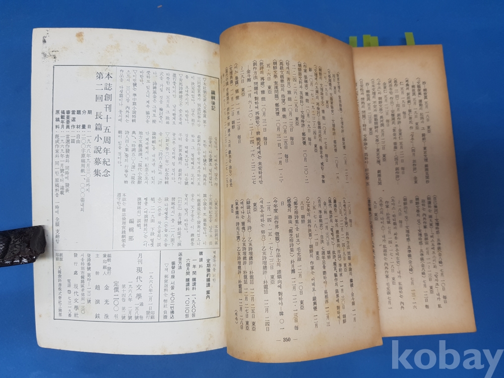 ▶朴斗鎭의 글 “이달의 話題-機智의 得失,詩推薦後記”가 실린 現代文學 1968년 2월호, 월간 현대문학,350쪽