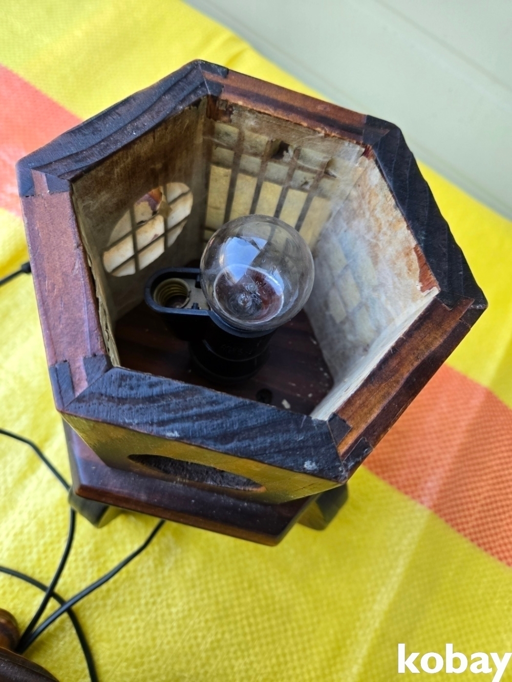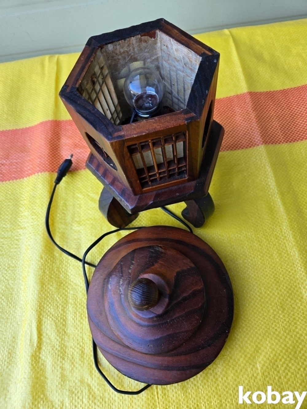 나무로 만든 6각 전등 입니다.