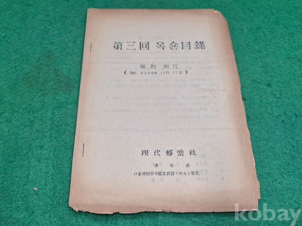 1]. 품명 : 제 3회 옥숀 목록(현대우표사)