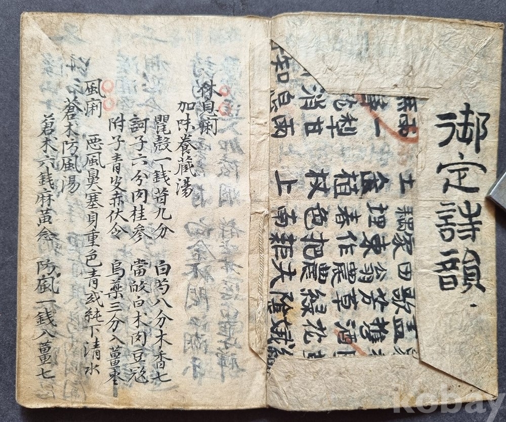 내지 앞뒤로 소장자가 정성스럽게 적어 넣은 **한약 처방(가미양장탕, 창출방풍탕 등)**은
