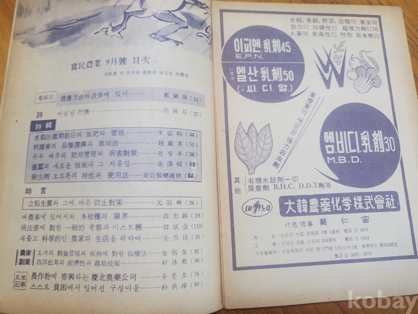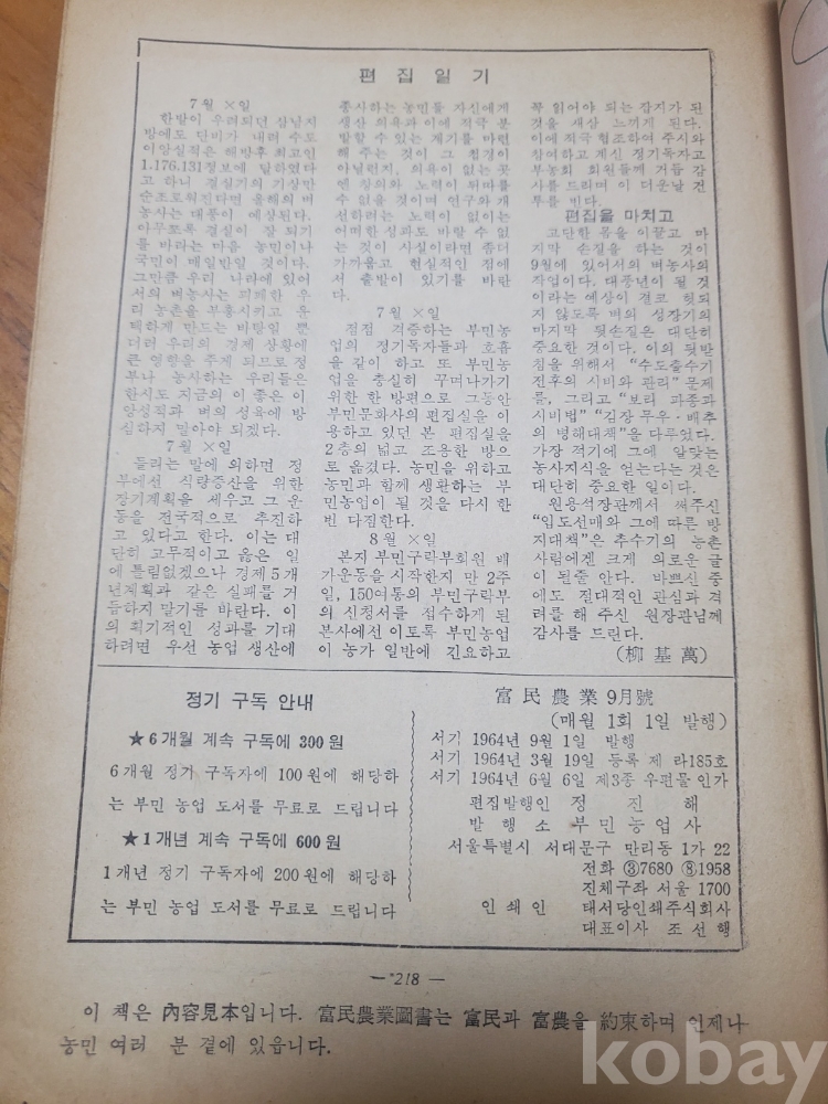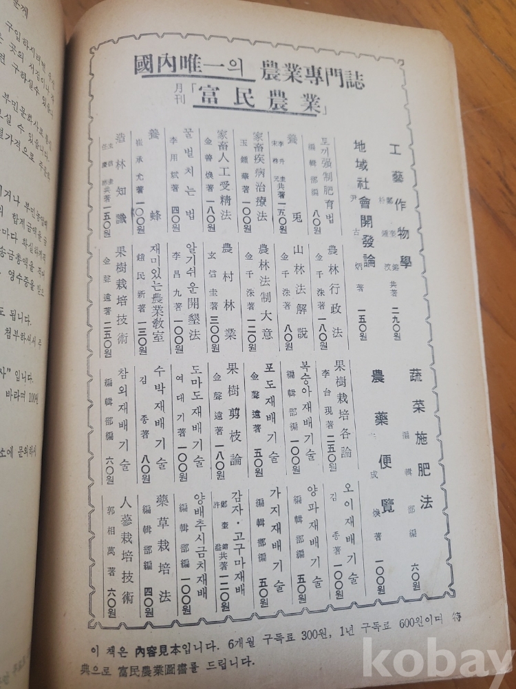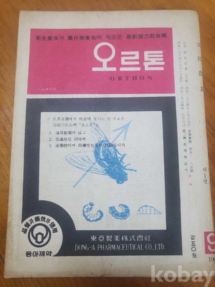 1. 부민농업(富民農業) 통권 9호(제1권 제9호), 부민농업사, 1964년, 40쪽, 상태 상, 사진 참조