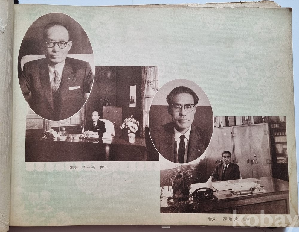 주요 인물: * 당시 총장 윤일선(尹日善) 박사 (한국 근대 의학의 선구자, 서울대학교 총장 역임)의 집무 모습 수록.