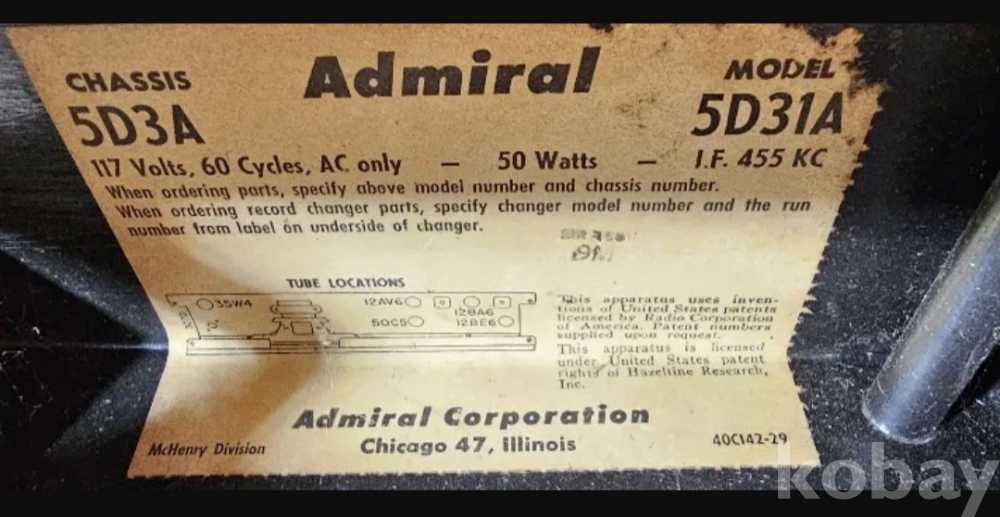 희소성 있는 골동품 진공관 Admiral 턴테이블 모델 5D31A