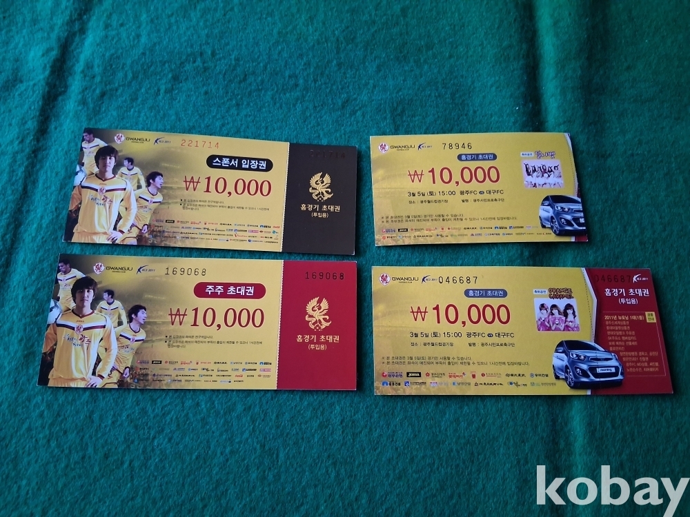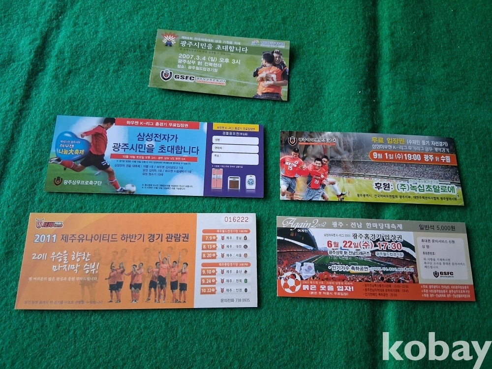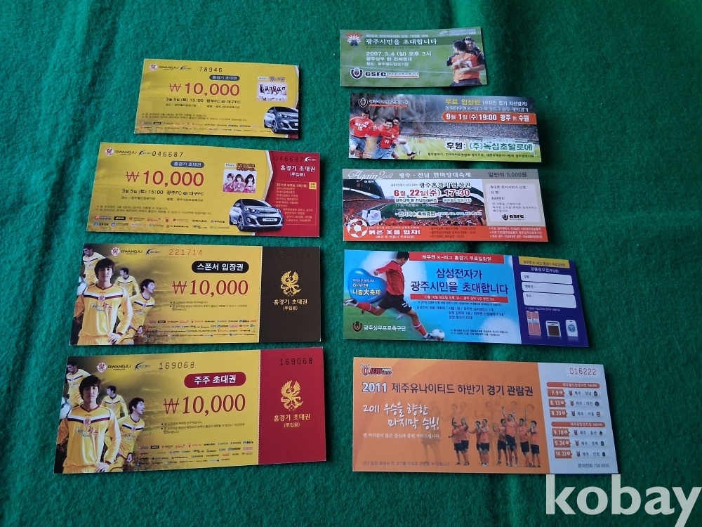 종류가 각각 다른 프로축구 입장권 9매(미사용 8매, 사용1매)
