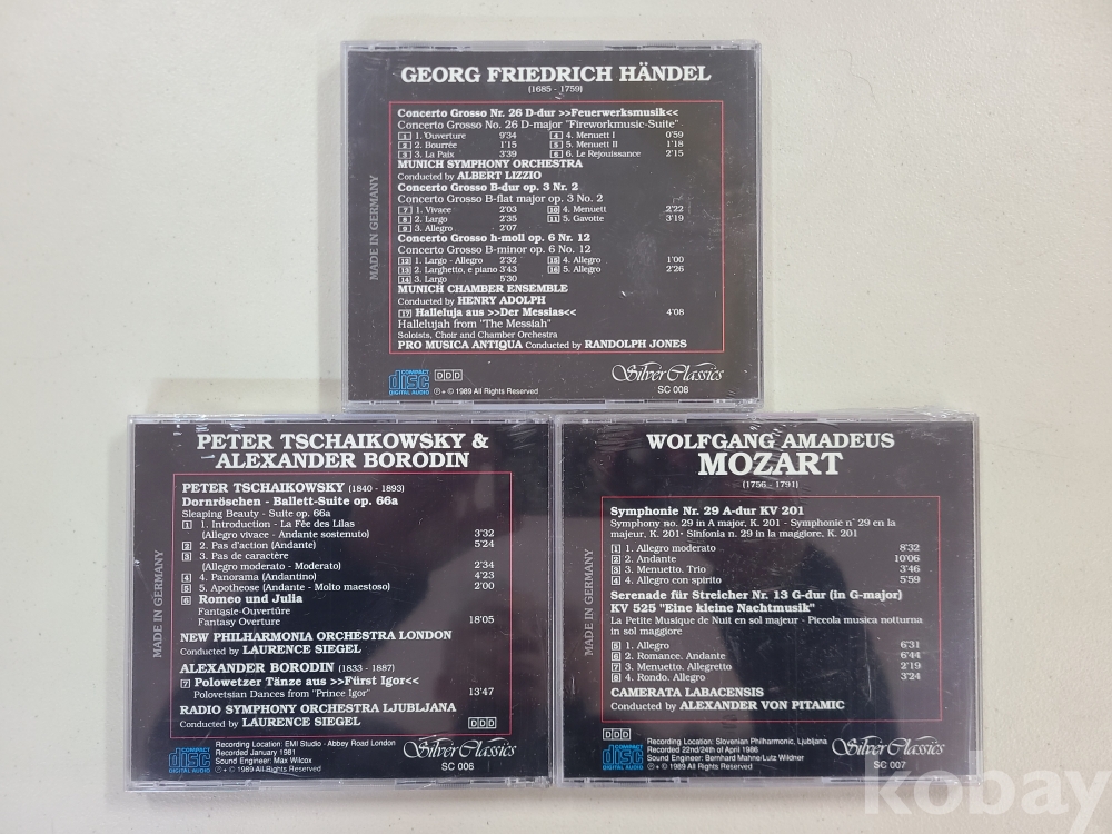 [반값이하 CD-05] 음악 클래식 CD 독일 Silver Classics 정품 헨델 / 차이코프스키 등 / 모짜르트 3매