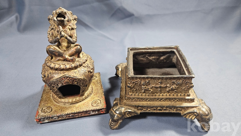 티벳불이 앉아계신 모습의 종교에 관련된 형태로 보여집니다.