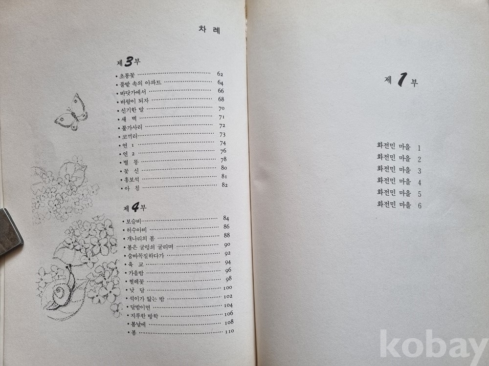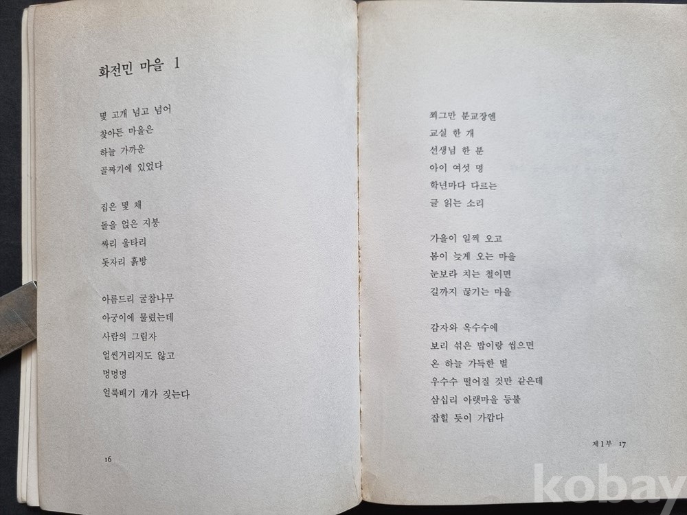 특히 '화전민 마을' 시리즈나 '을숙도' 등 시대적 배경과 자연을 노래한 시들이 수록되어 있어 내용 면에서도 수집 가치가 높습니다.