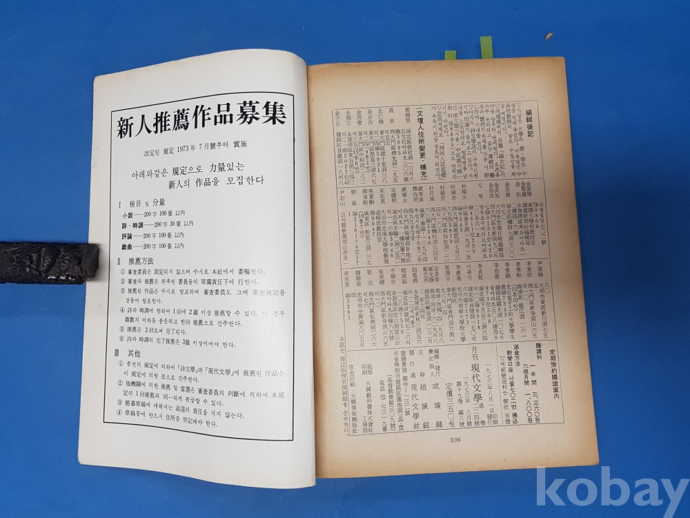 ▶朴斗鎭의 글 “水石列傳(續)ⅩⅢ”이 실린 現代文學 1973년 8월호 월간 현대문학,336쪽