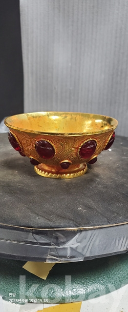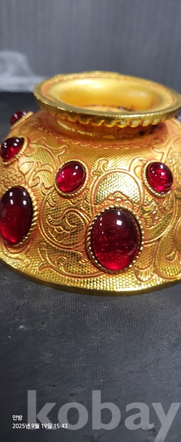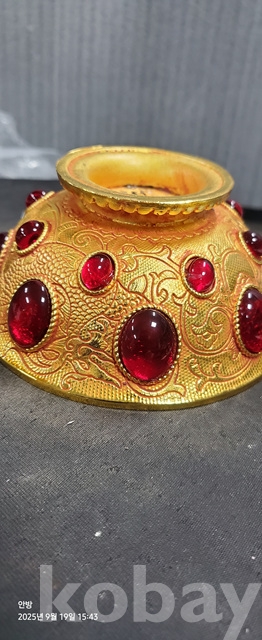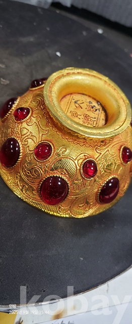 w-96.무게감있는 금도금 보석박힌찻사발