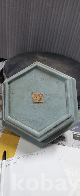 a-24,관지가 특이한 오래된 중국5대도자기 육각여요수반