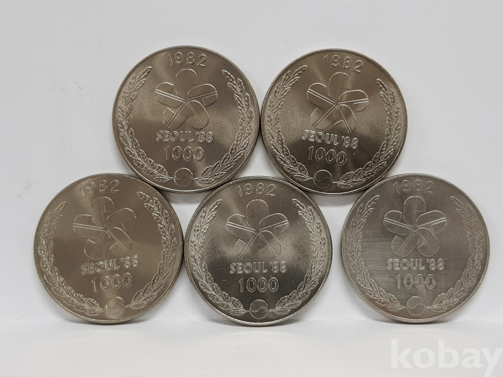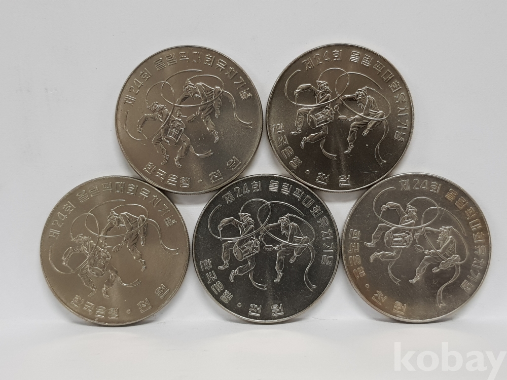 - 제 24회 올림픽대회 유치 1차 민속춤 천원 기념주화 - 5개 일괄