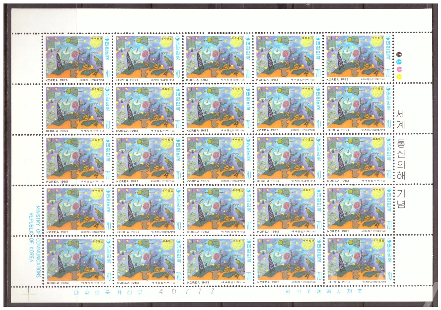 (한국전지) 1983.6.20 세계통신의 해 sheet of 25 MNH