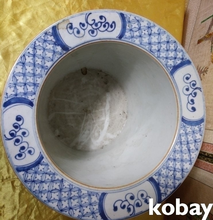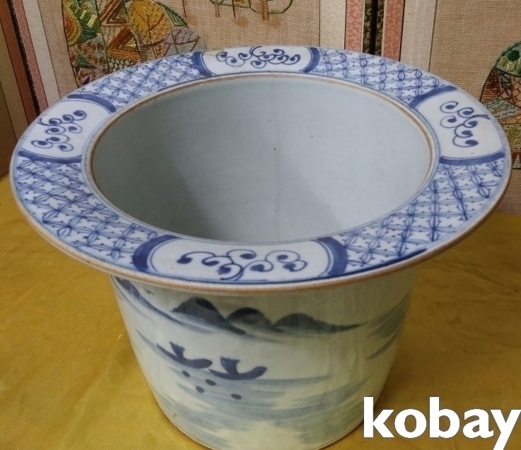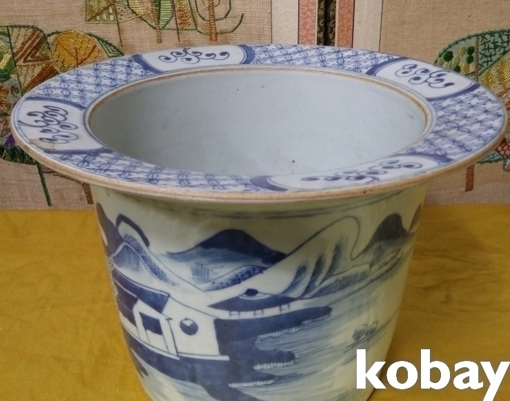 청화 산수 문양 도자기 입니다.