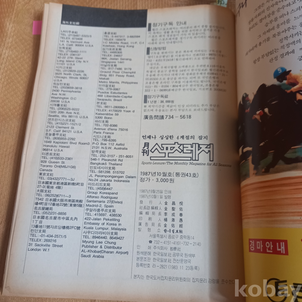 A 5534: 87년 10월 영화배우 김혜정 표지의 "스포츠레저"