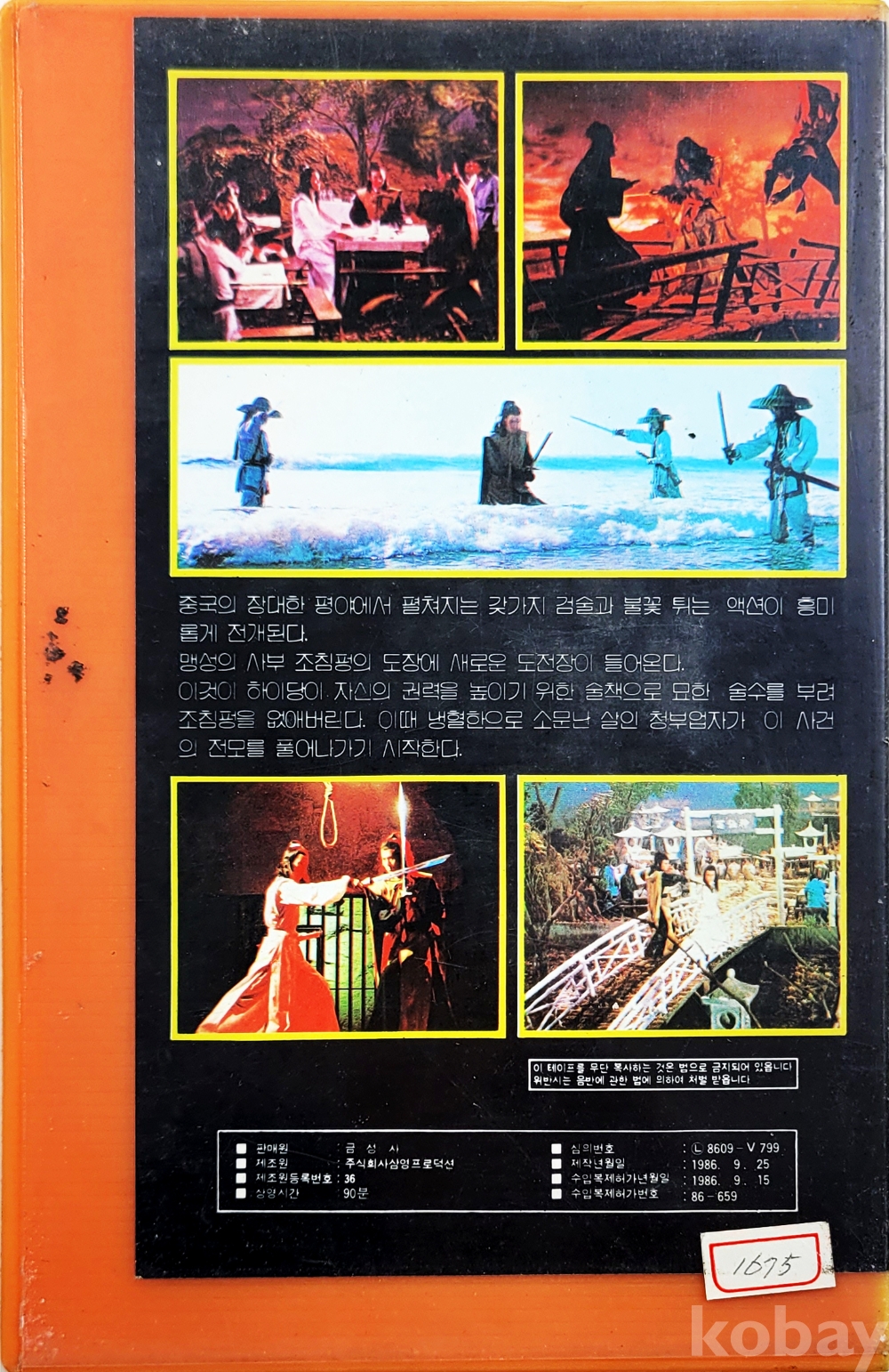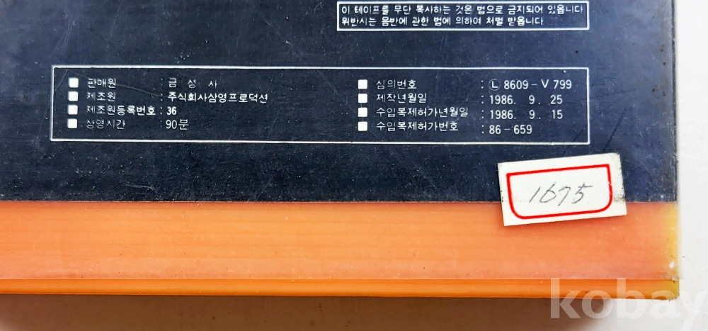 상 태 | 재생여부 확인 불가 및 재생상태 확인 안함. 간혹 보이는 비디오테이프에 발생한 곰팡이들은 세월의 흔적으로 필요하시면 관련업체에 의뢰하시어 세척을 하셔야 합니다. 단, 흰색곰팡이는 리와인드로 한번 돌려주면 제거가 가능하나 검정색곰팡이는 세척을 하여도 화면재생이 안됩니다. 그래서 각각의 비디오테이프의 오염상태를 사진으로 올리오니 보시고 참고하여 주시고 상태가 안좋은 것은 화질의 질을 떠나 비디오테이프 그 자체의 존재에 소장 의미를 부여하시는 분들만 입찰하여 주시길 권유합니다. 부득이 반품신청시 사전에 판매자에게 미리 연락주시기 바랍니다. 비디오테이프는 재생하는 기계의 상태에 따라 화질이 다를 수 있는 등 분쟁의 소지가 많은 품목입니다. 사전 연락없이 반품신청시에는 입찰제한자로 등록하겠습니다. 훼손 및 오염 정도(강,중,약,양호로 표시합니다.) - 케이스 & 삽지 : 약~중 / 라벨 : 약 / 테이프 : 양호 / 곰팡이 : 양호 |