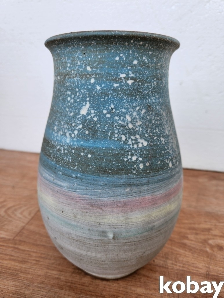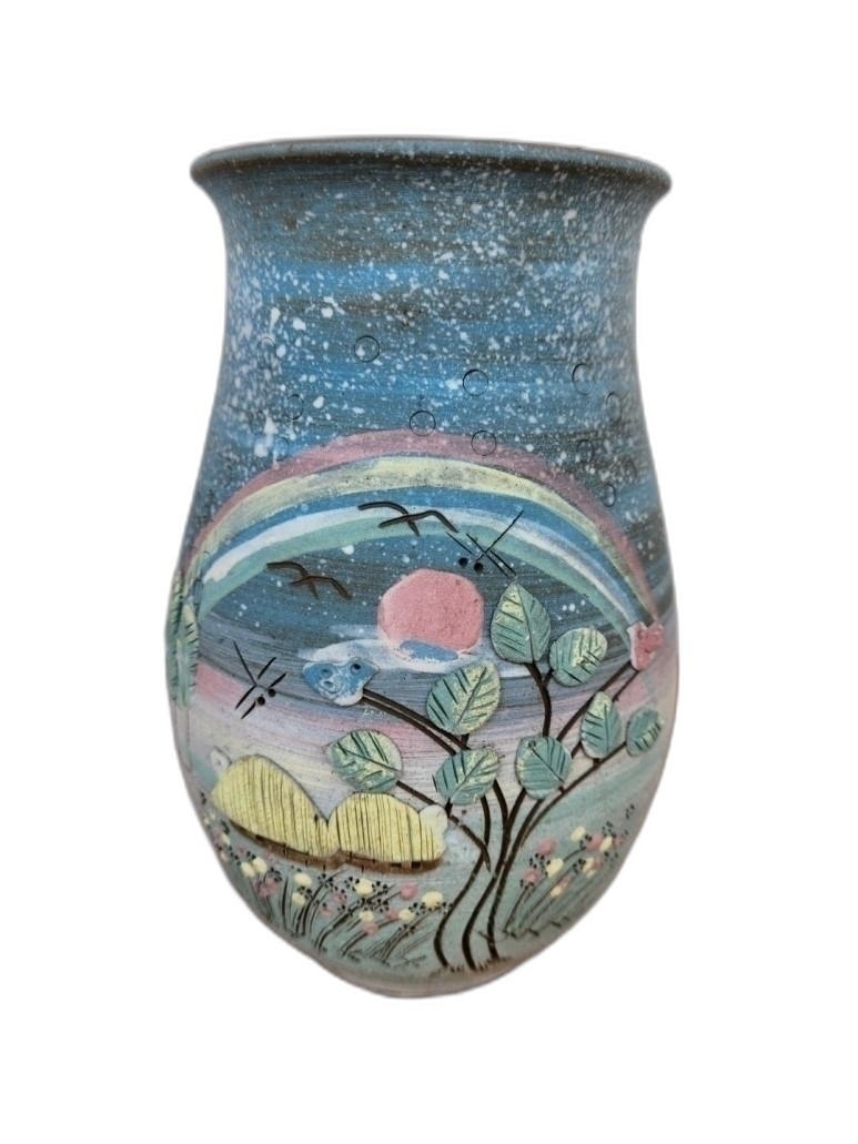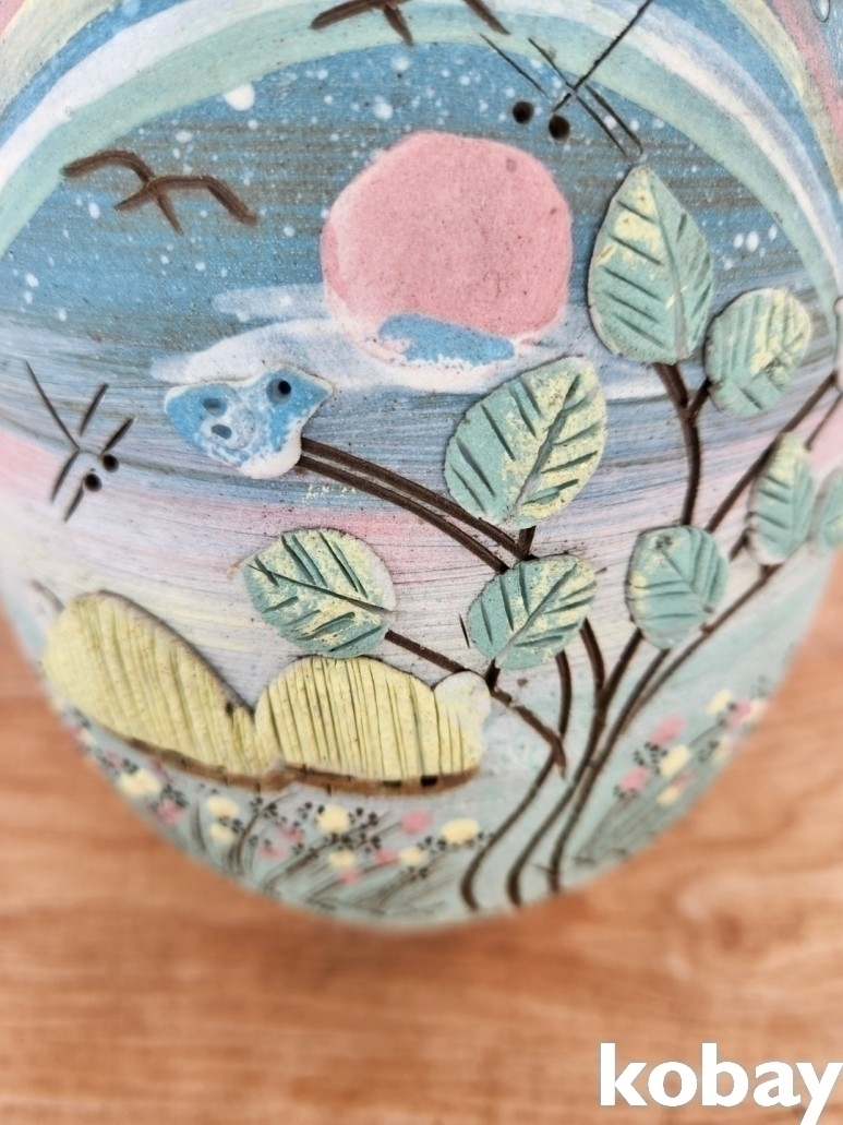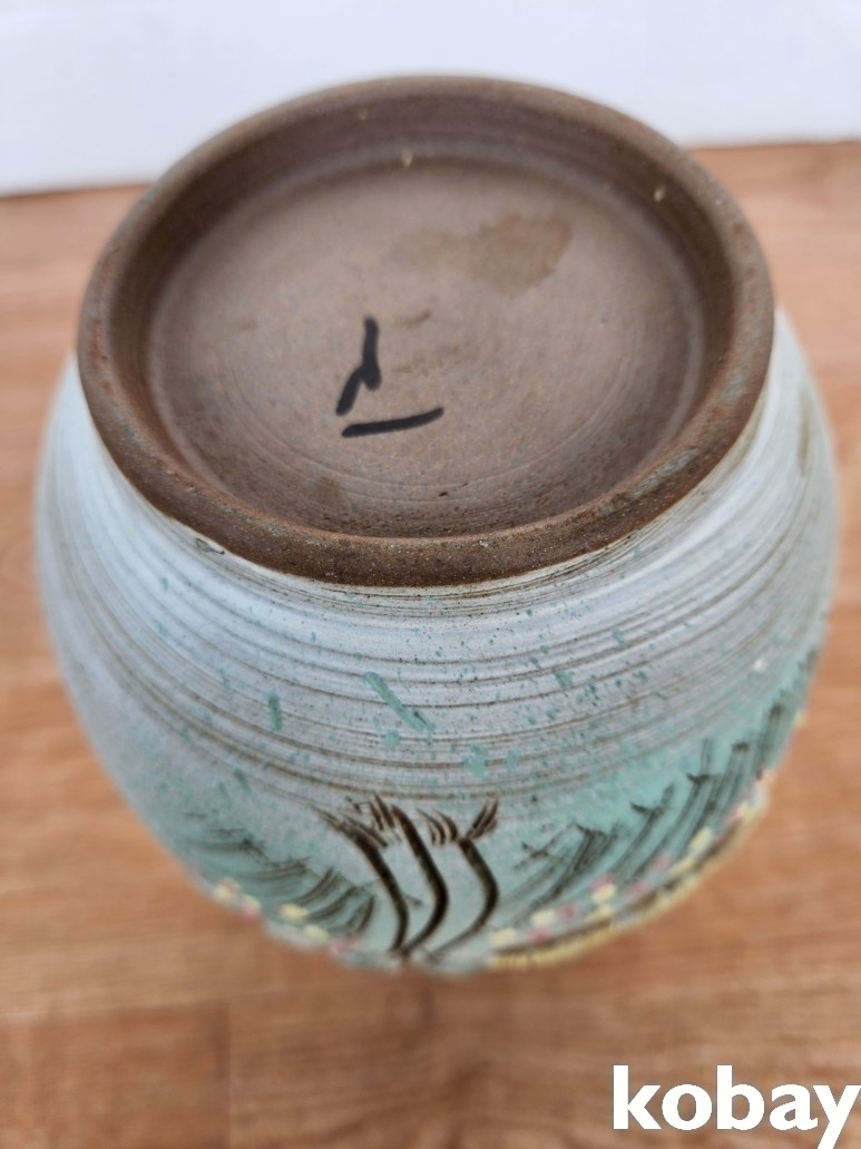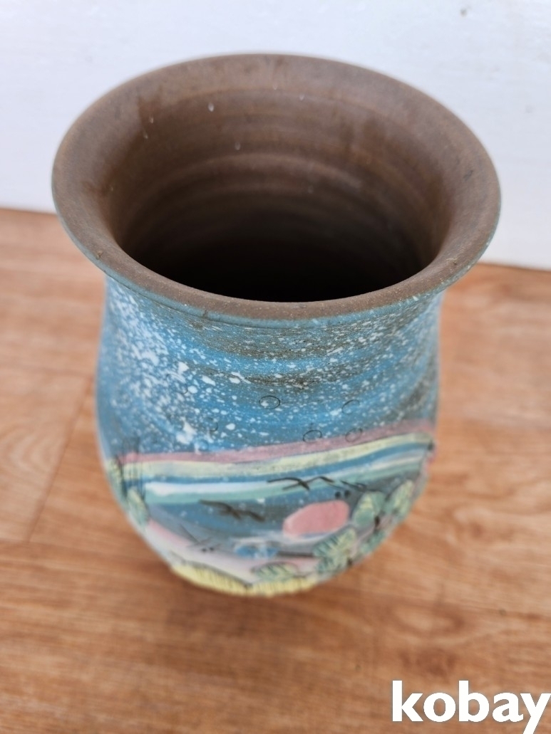 집 풍경이 양각으로 돌출된 입이 큰 도자기 입니다.