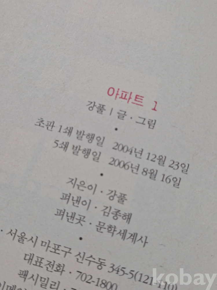 (((만화))) 미스테리 심리 썰렁물 - 아파트 1 ~2권 (완관) 강풀 글/그림 (2006년 초판 5쇄)