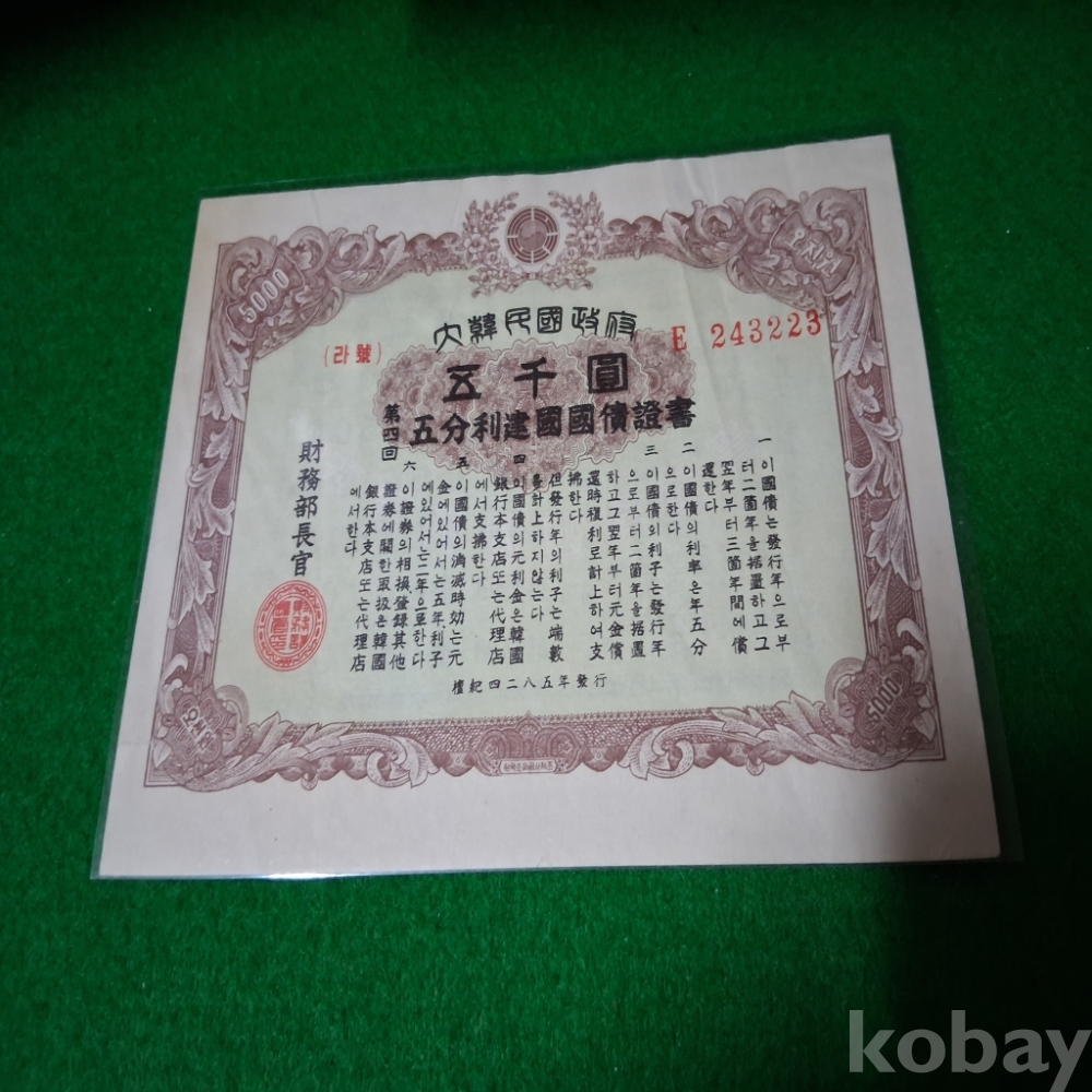 대한민국 5분리채권 4회 5000원 사용제