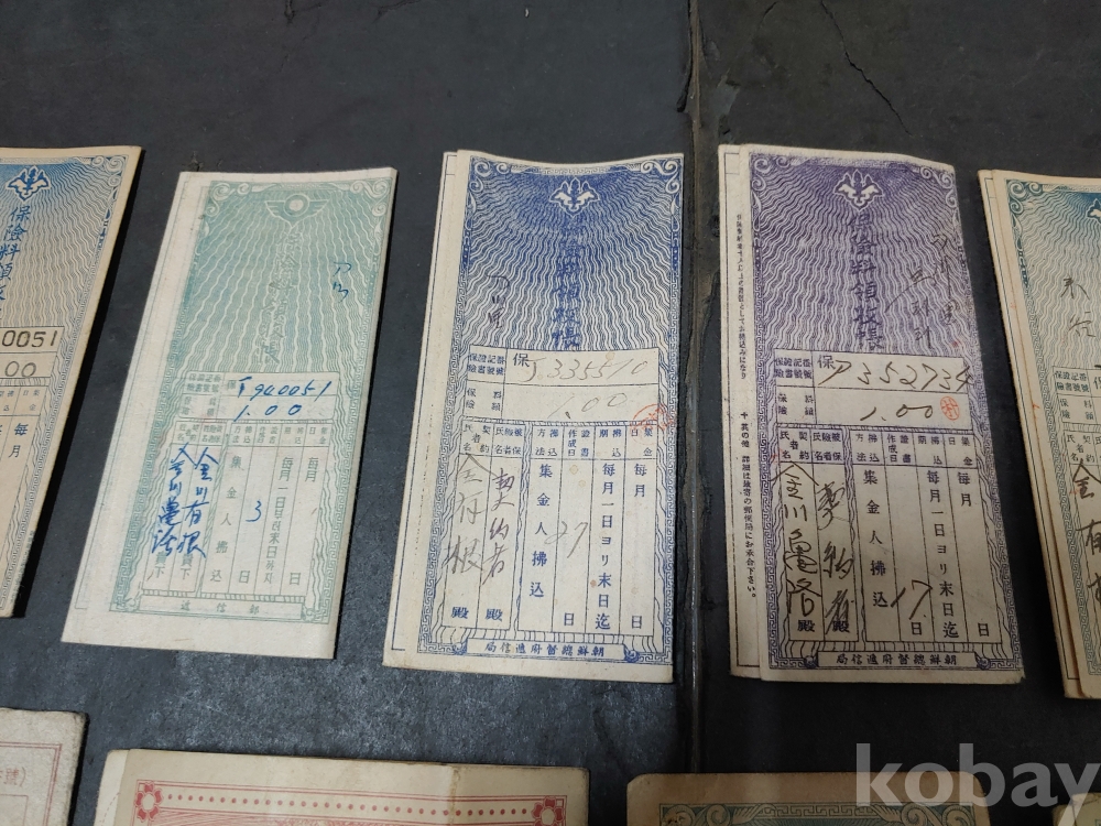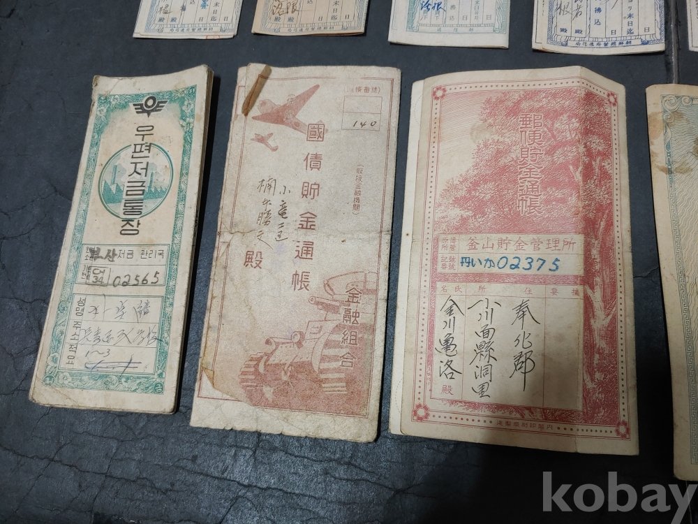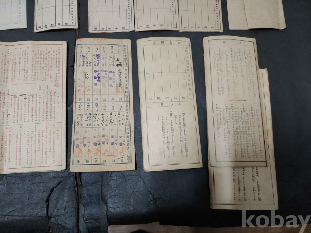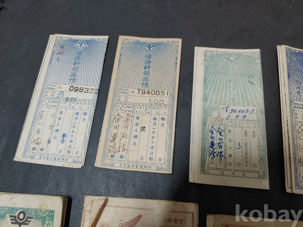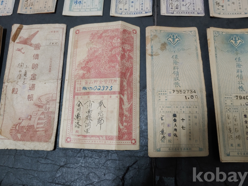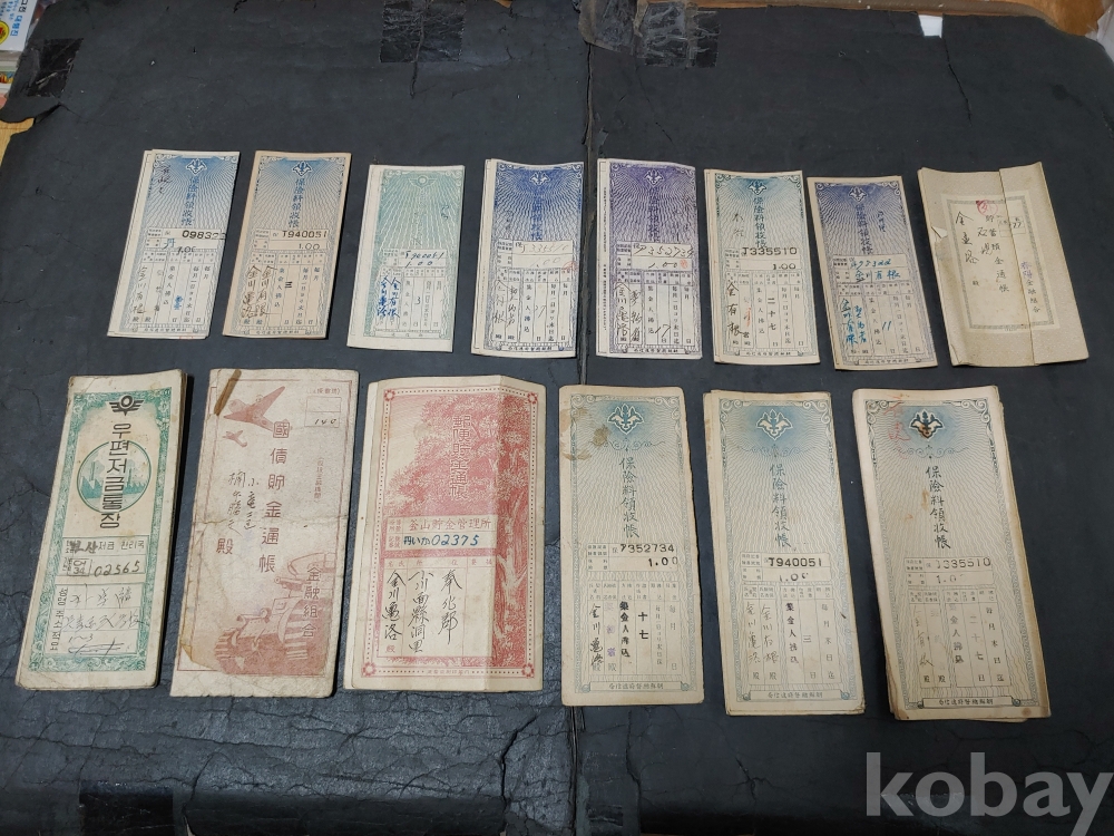 ""소화연도에 국채저금통장. 우편저금통장. 보험료영수장등 13장과 1957년도 우편저금통장 1개 등 14장 일괄""