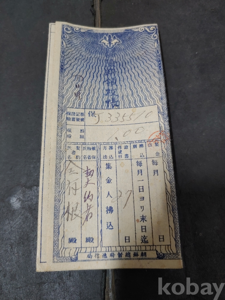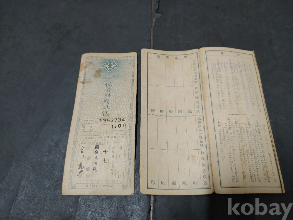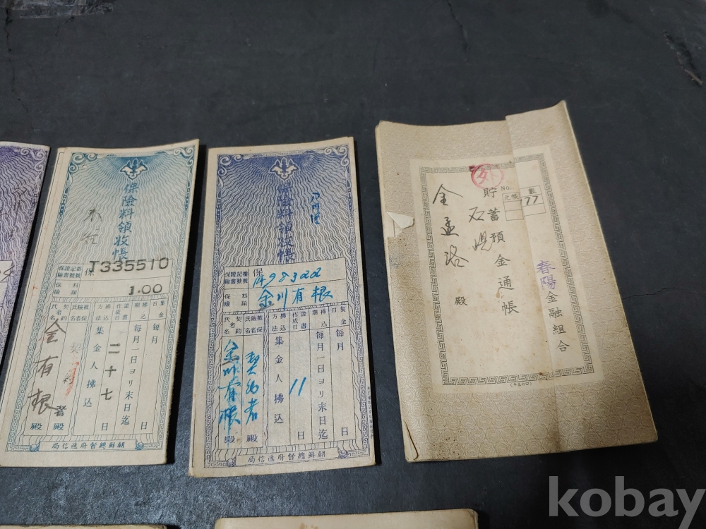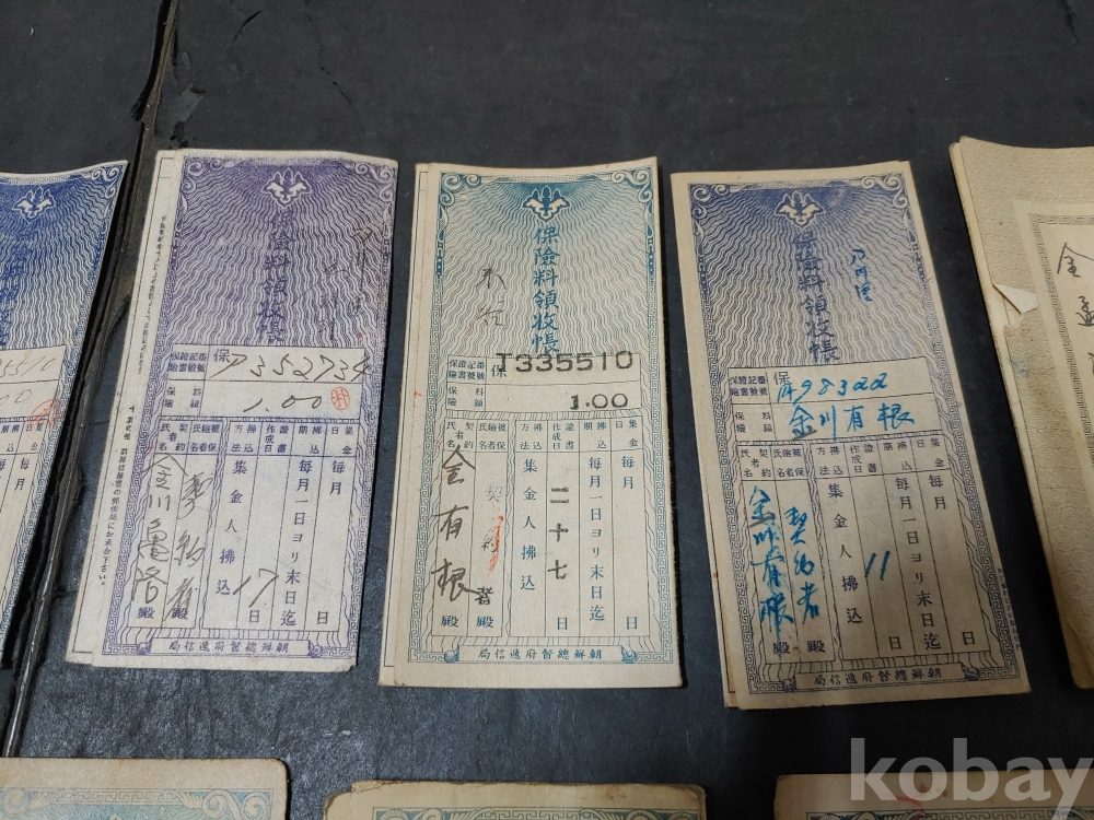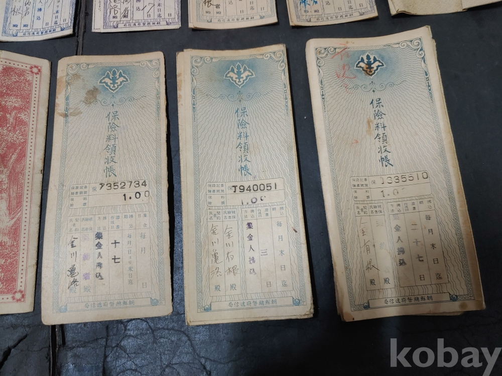 ""소화연도에 국채저금통장. 우편저금통장. 보험료영수장등 13장과 1957년도 우편저금통장 1개 등 14장 일괄""