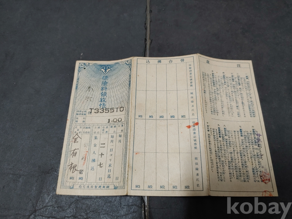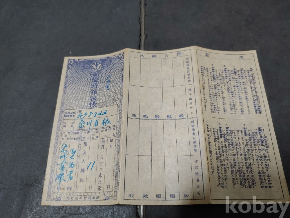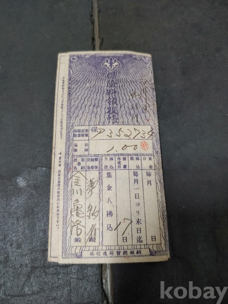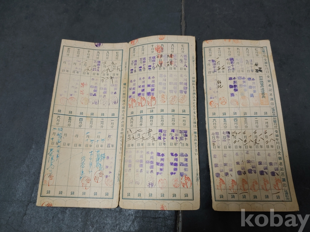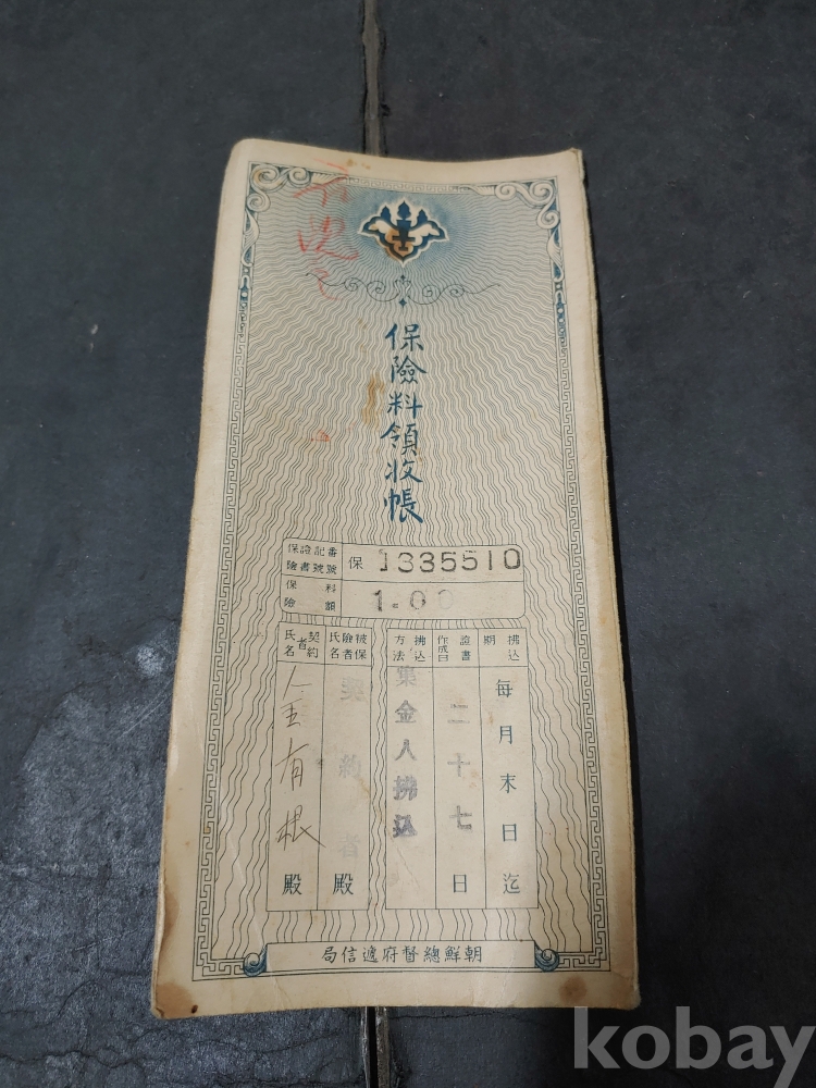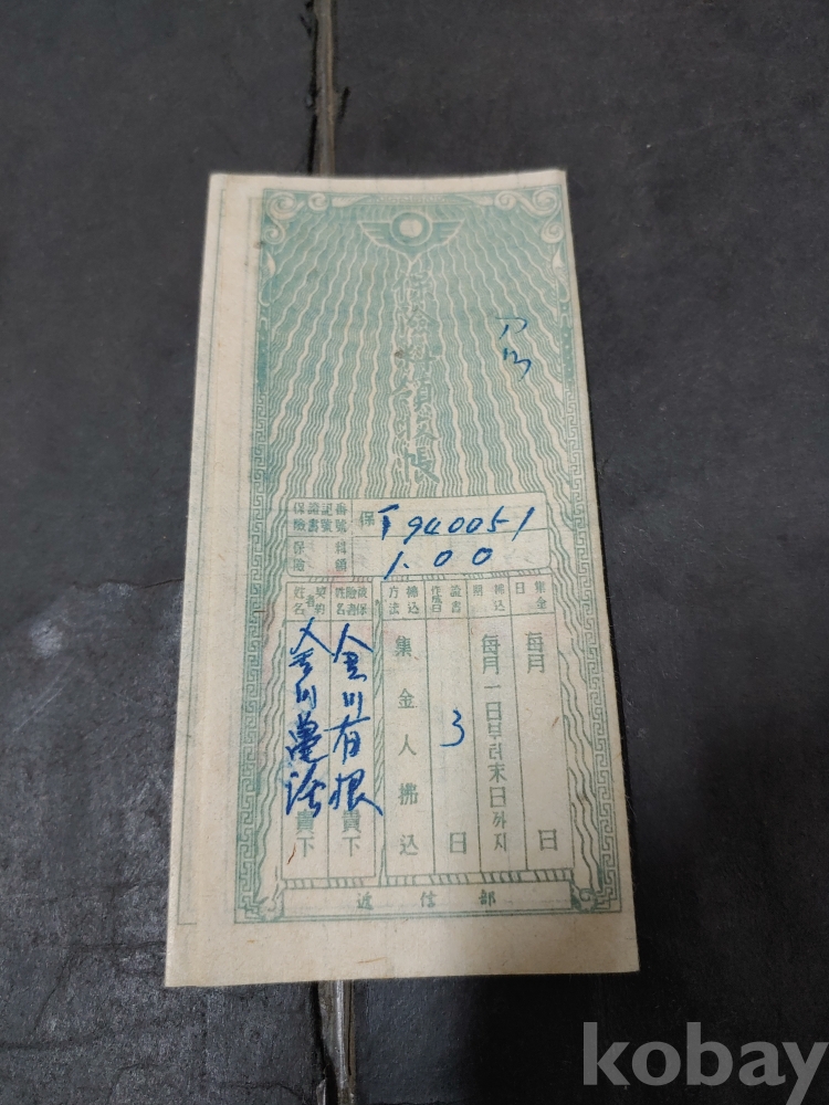 ""소화연도에 국채저금통장. 우편저금통장. 보험료영수장등 13장과 1957년도 우편저금통장 1개 등 14장 일괄""