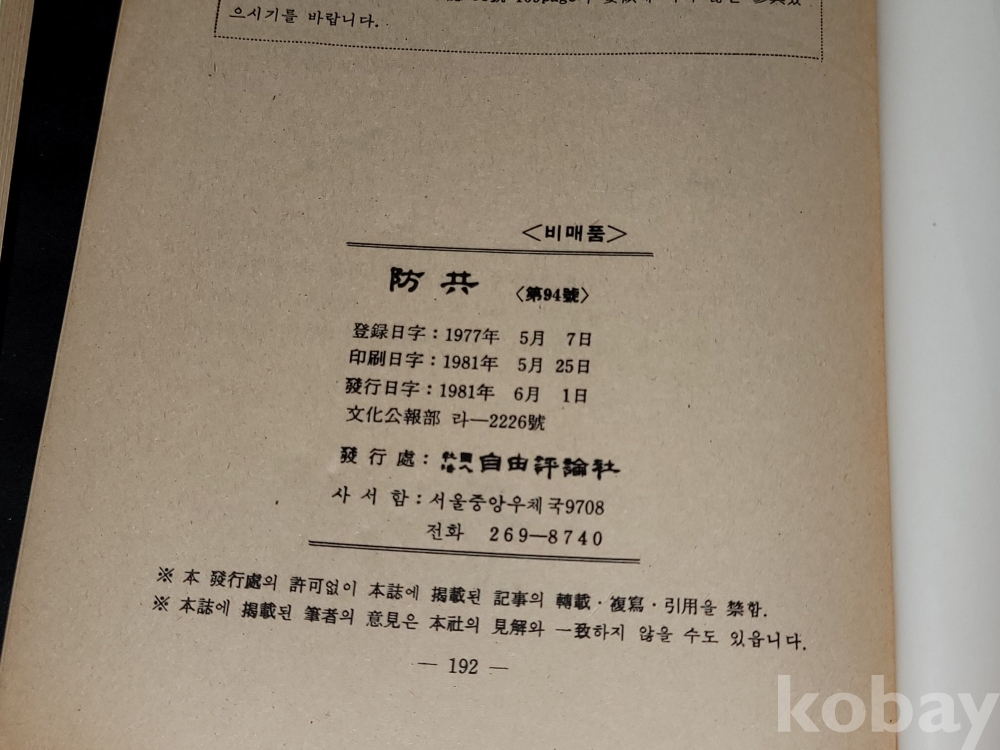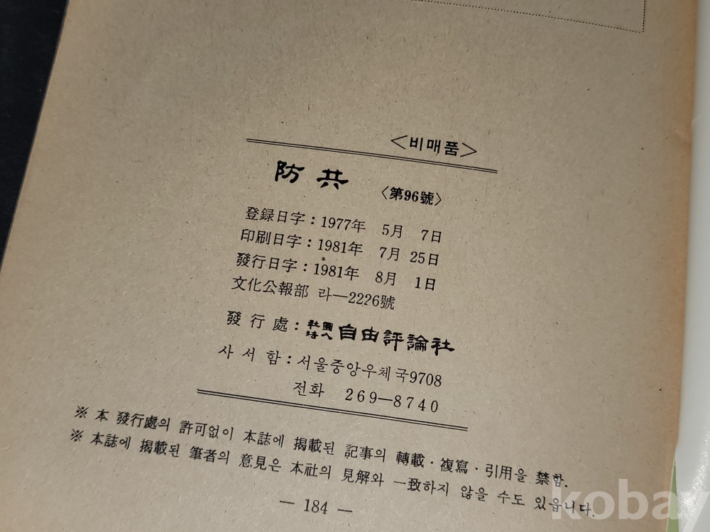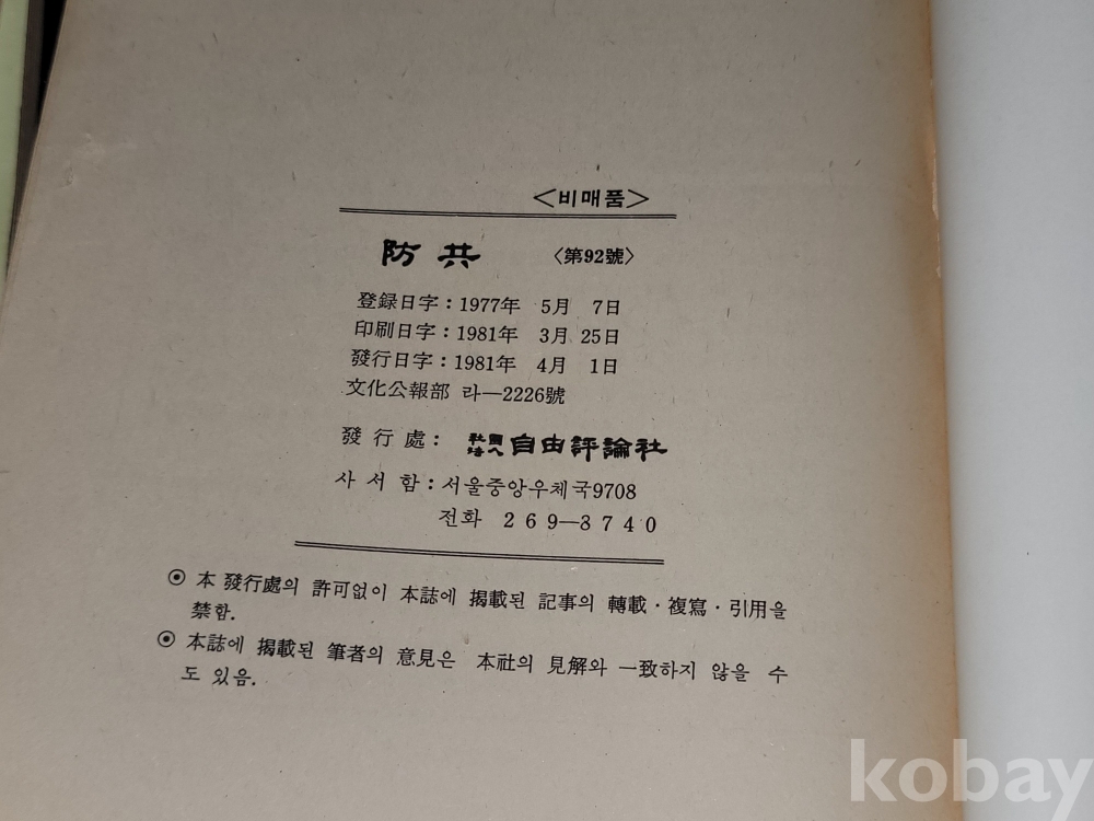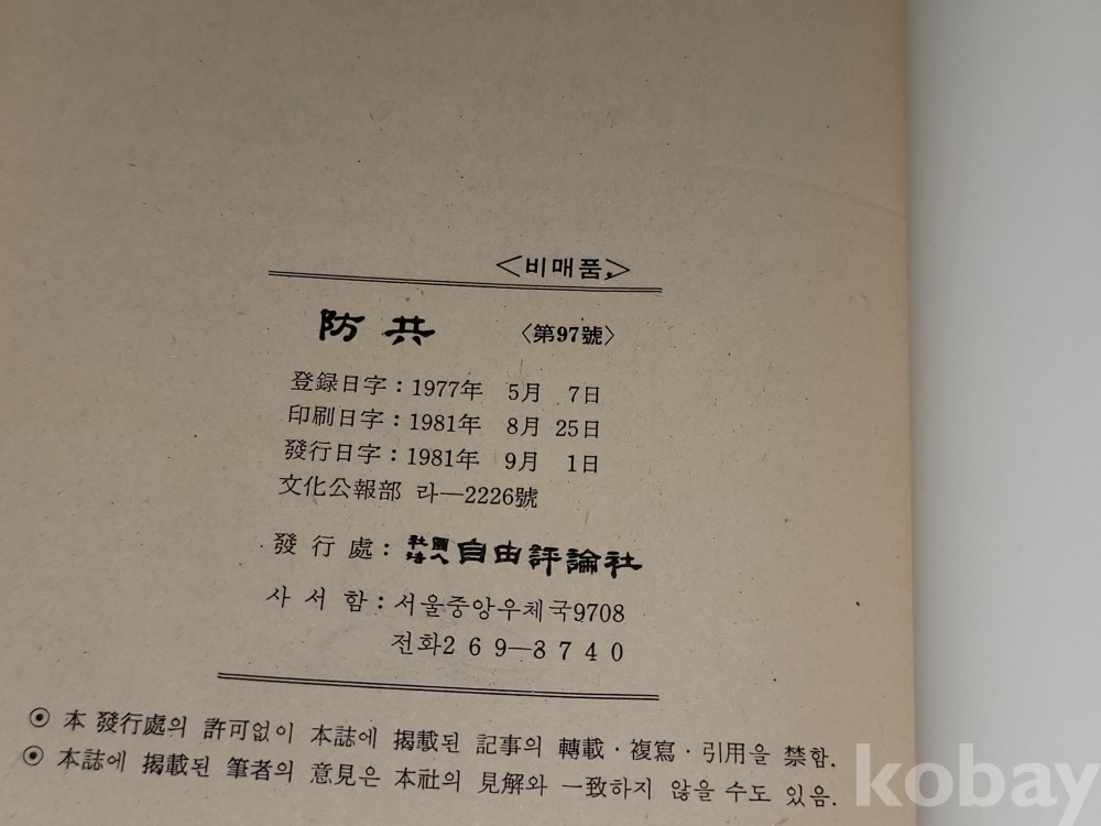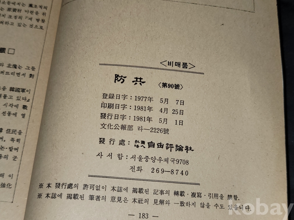 빈티지 세월 감이 느껴지는 1981년 "방공" 서적 10권 일괄입니다.