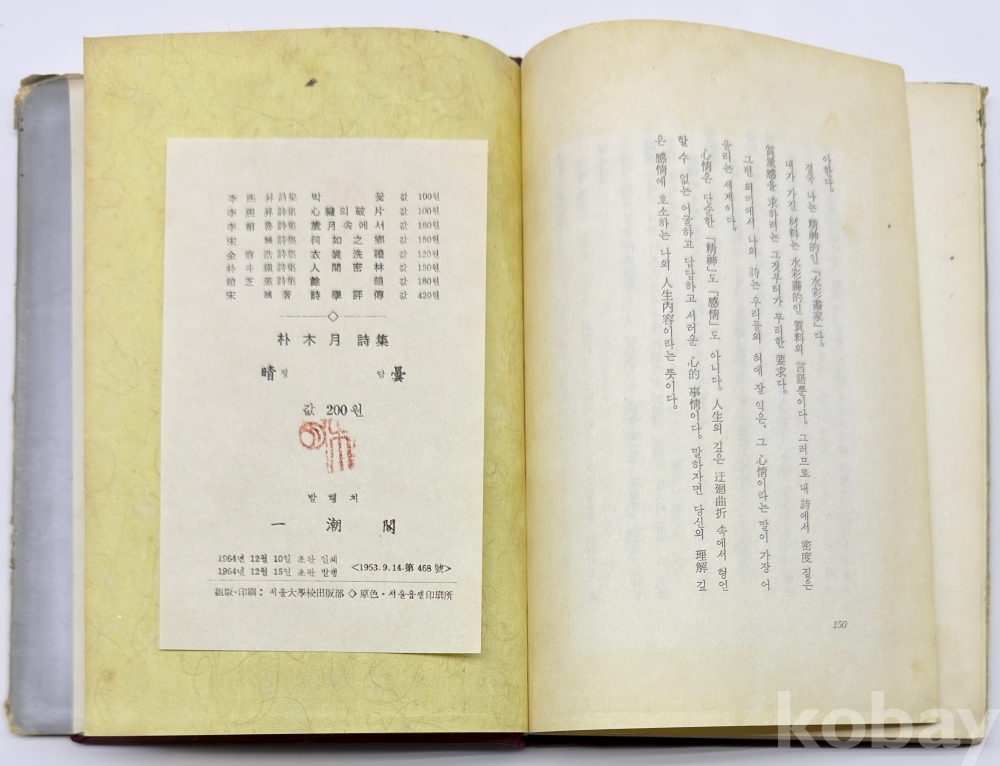 물 품 명 | <취향지가> [24] 1964년 박목월의 제4시집 [청담(晴曇)] 저자 서명 초판본 1책 | |||||