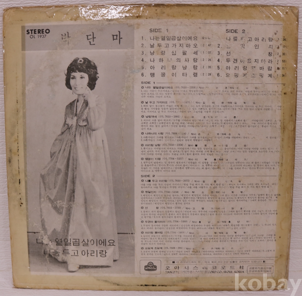 | 자켓상태 | G : 눈에 띄는 손상, 테이프, 필기 존재 | 음반상태 | VG : 생활 기스 다수, 가벼운 노이즈 존재 | 발매정보 | 초반 | 가사지여부 | 유 |