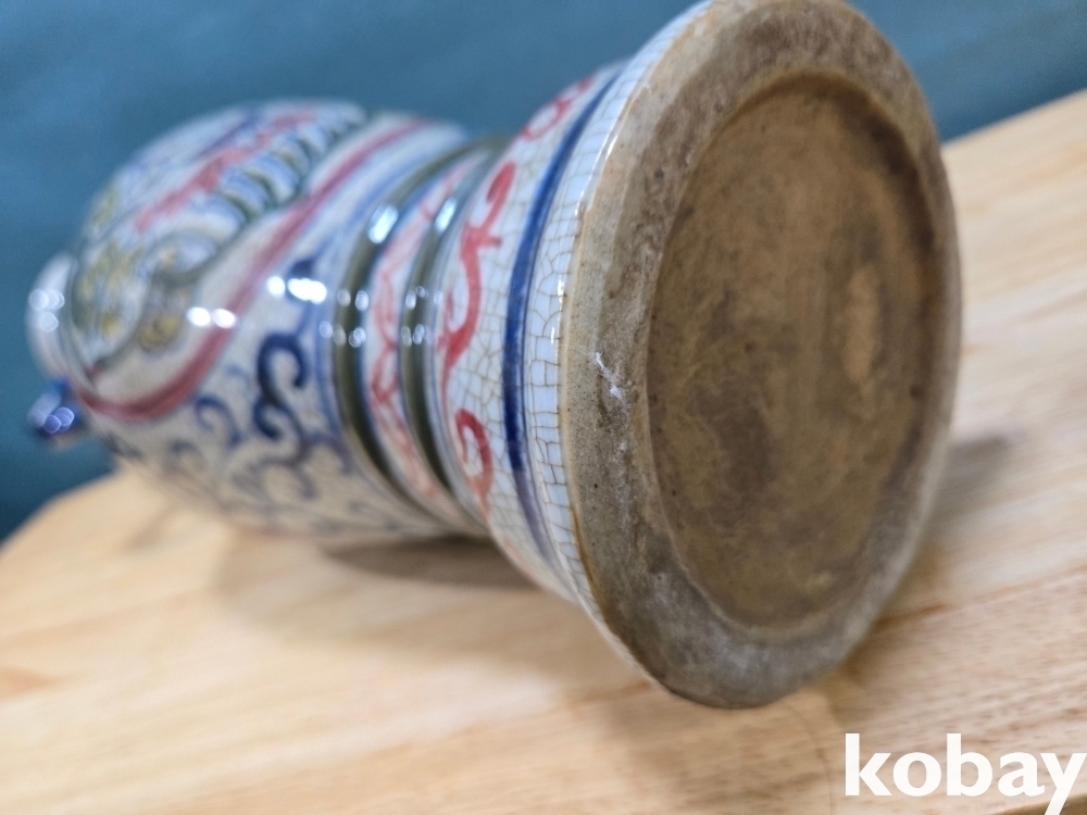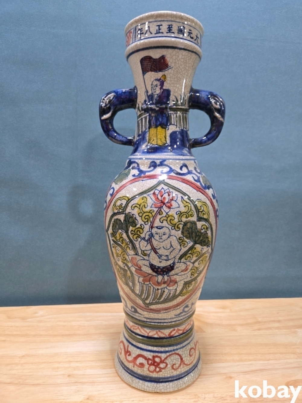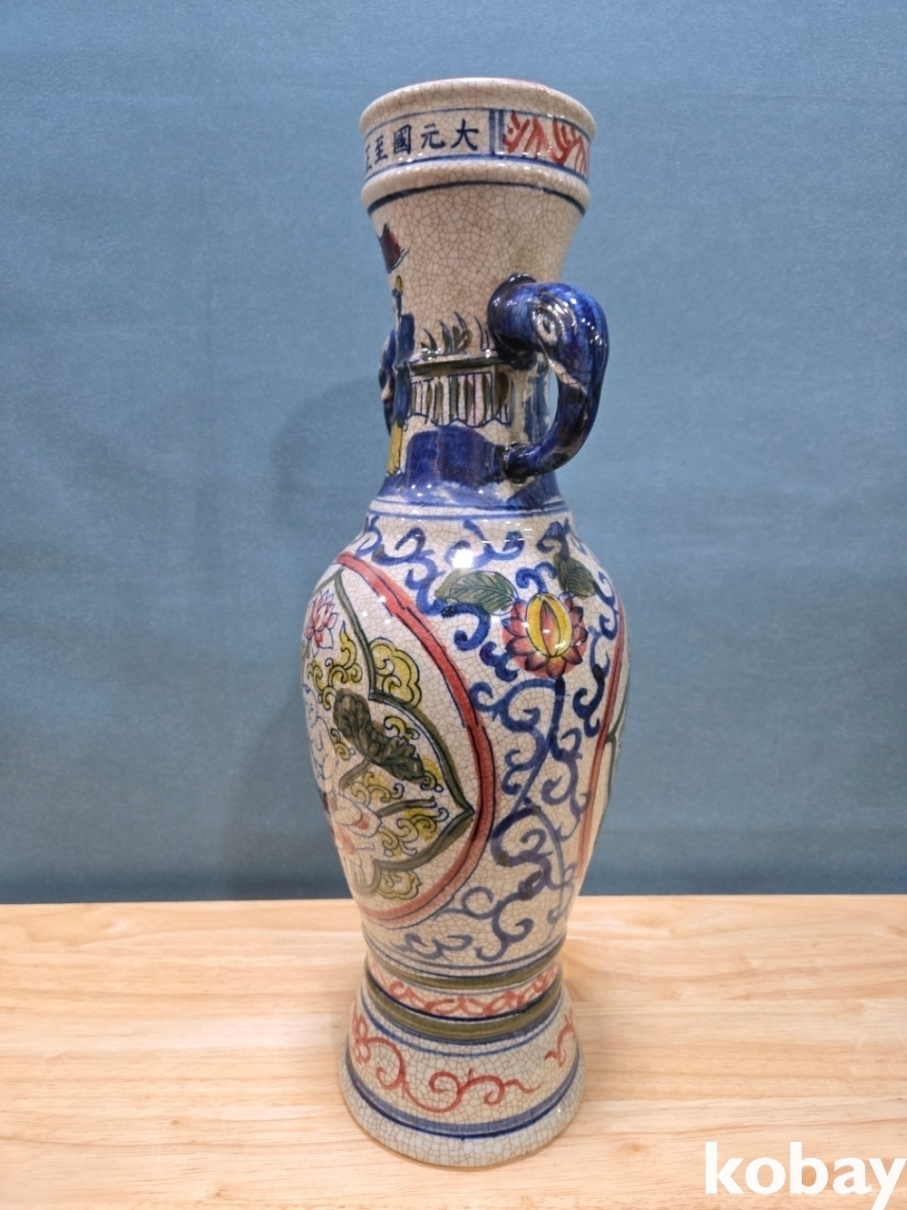 코리끼 모양의 양 손잡이에 목선에는 대원국지정팔년이라 표기 되어 있습니다.