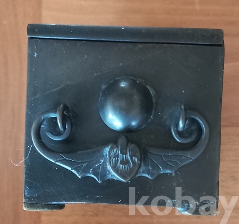 비교적 직사각형태, 옻칠? 오동?의 작은 합으로 미닫이식 덮개로 덮개의 가운데에 원과 쌍囍자를 은상감하고.. 정면 손잡이는 박쥐형으로 제작하였읍니다. 오랜 세월의 고태미와 함께 공예적인 미와 품위를 느낄수 있읍니다. 수리한곳 없이 상태 온전하고. 당시 이런 정도의 기물을 사용하였다면 상당한 상류층, 사대부가나 부잣집이 아니었나 추측만 하고.. 귀한 기물인 만큼 구경/감상만 하고 가세요.