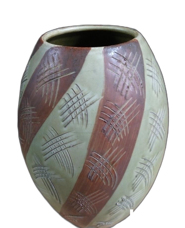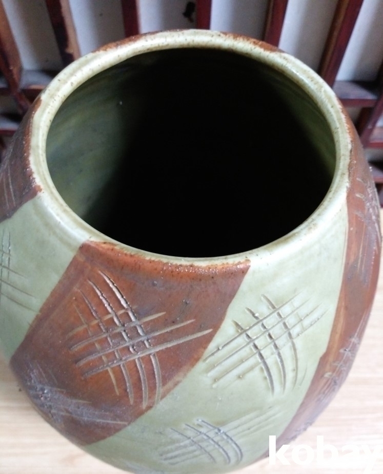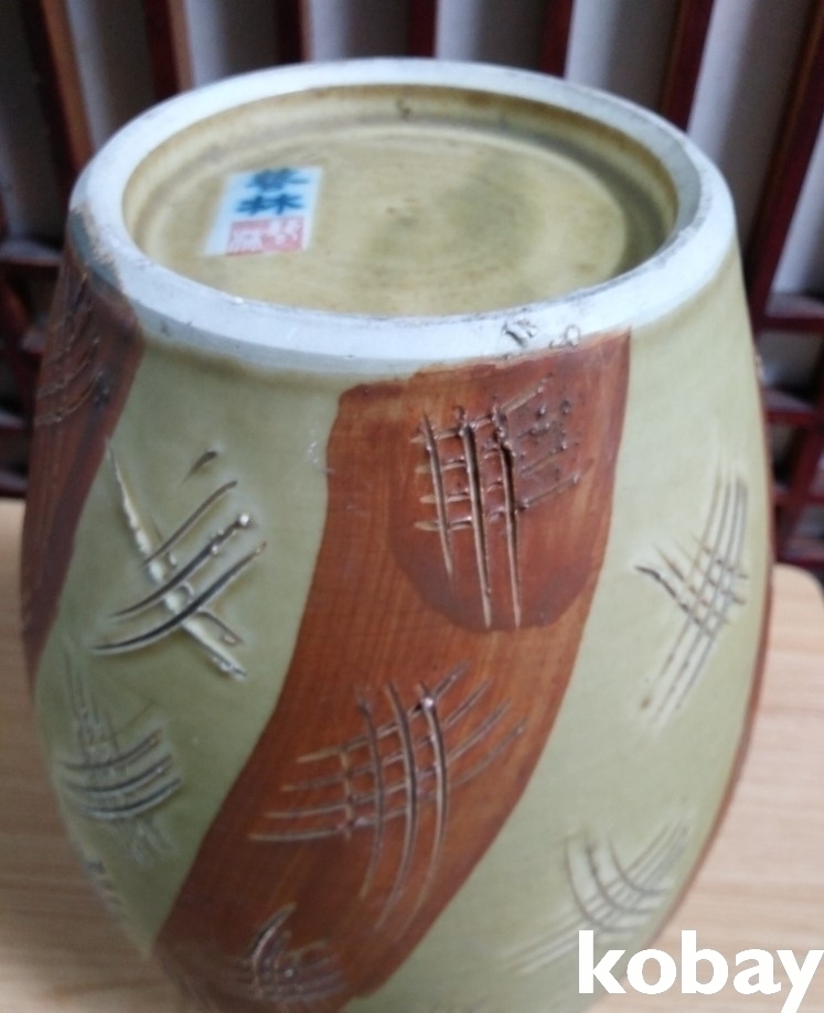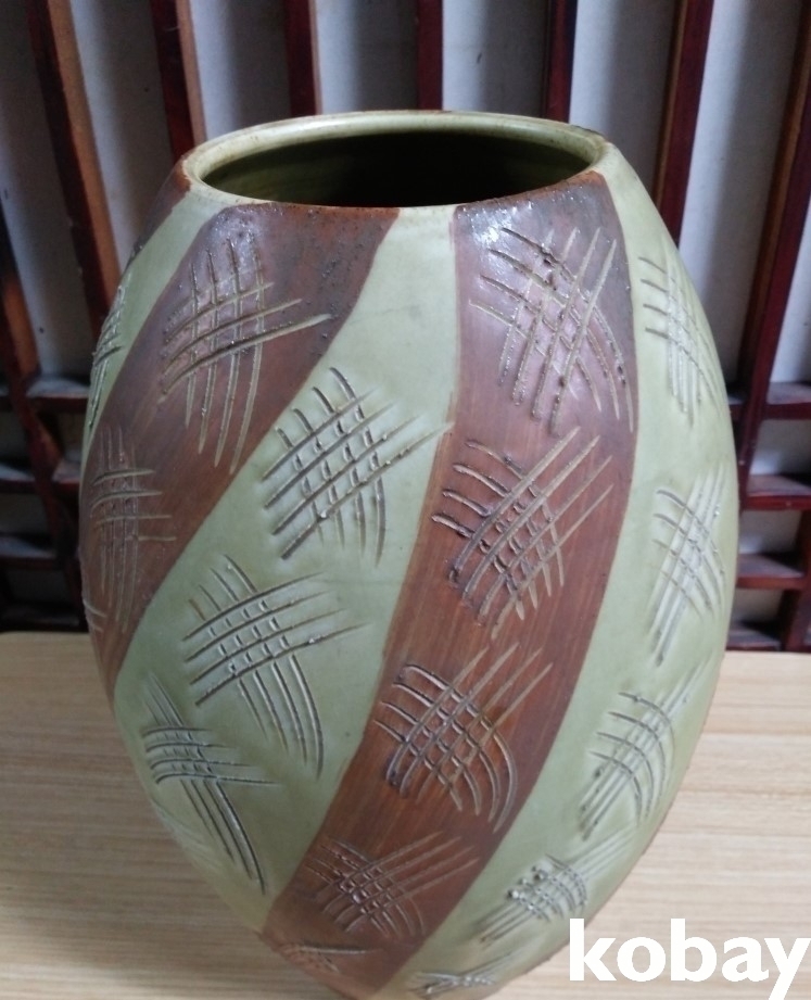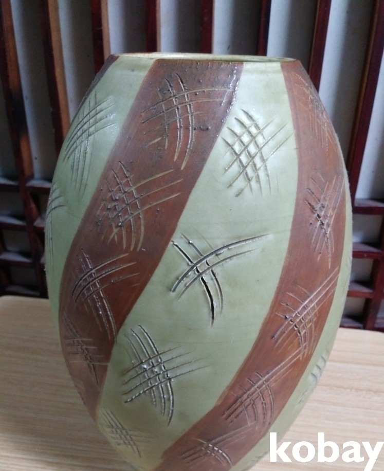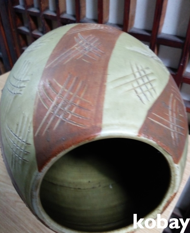 빗살무늬를 음각으로 조각한 갈색무늬 도자기 입니다.