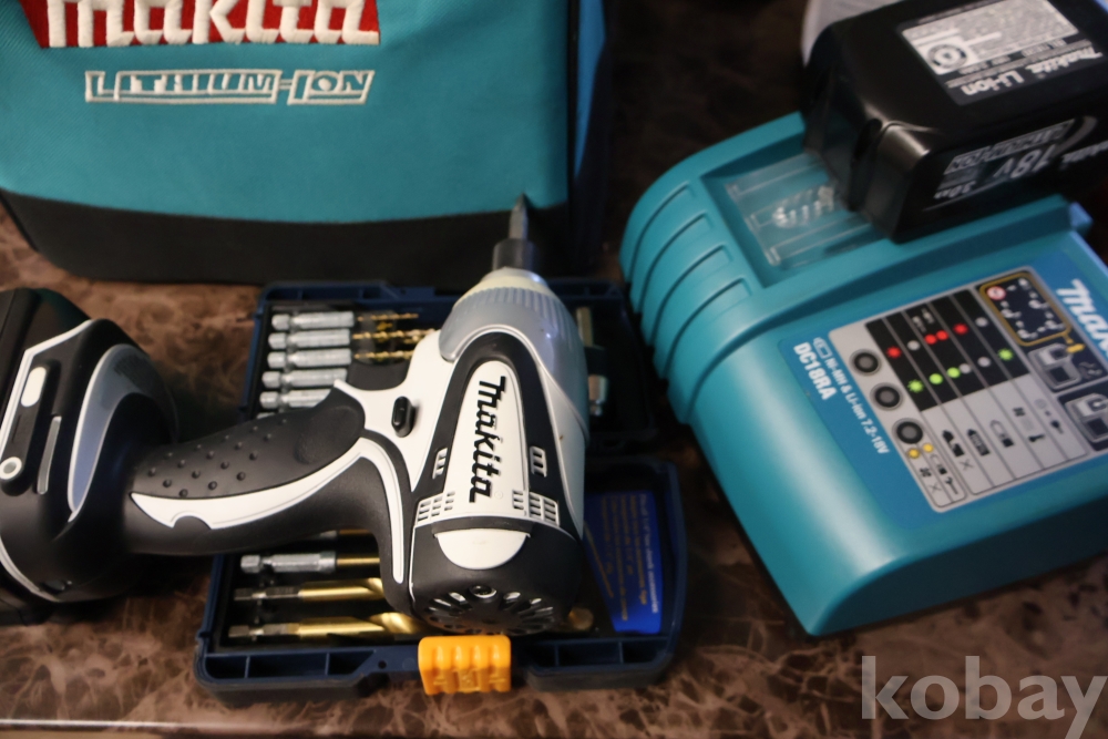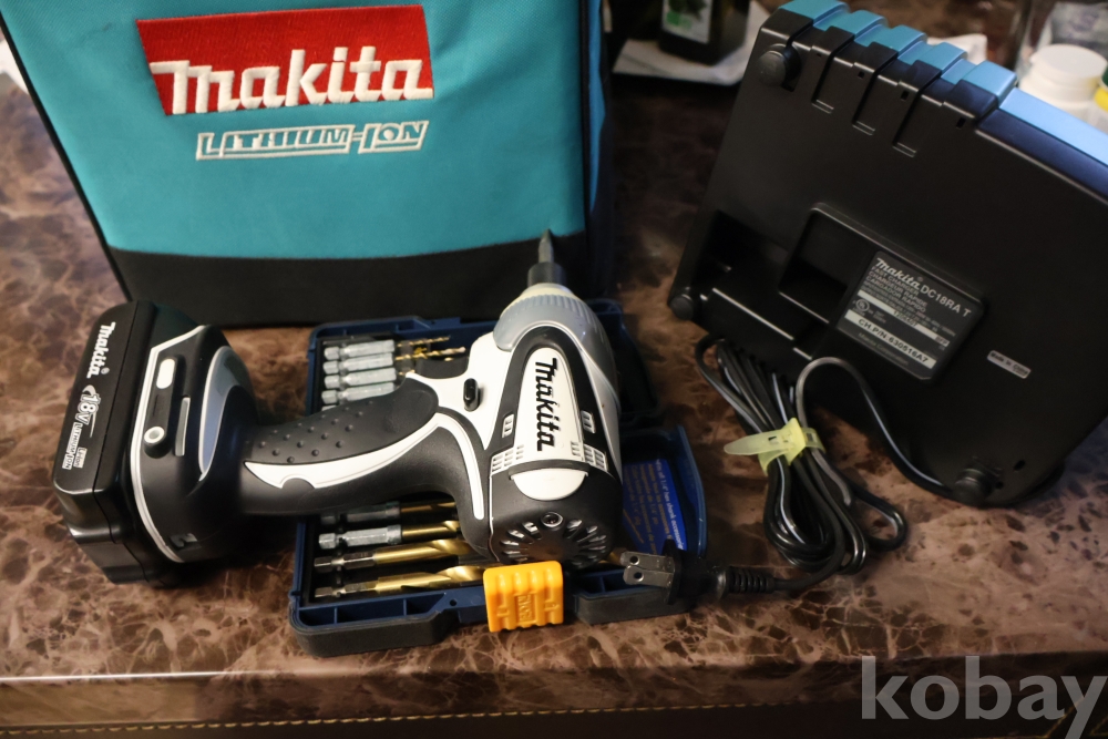 마키다 임니다 오리지날 케이스에 보관 거의 새거 수준 이며 110 /200 겸용이며 강력 하면 밧데리 2 개 특히 료비 드릴 세트를 가진 묵직한 명품 임니다