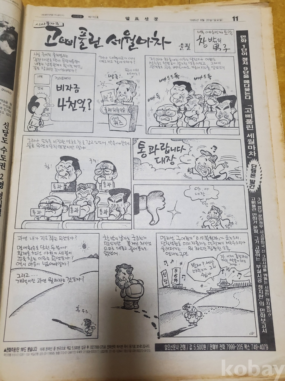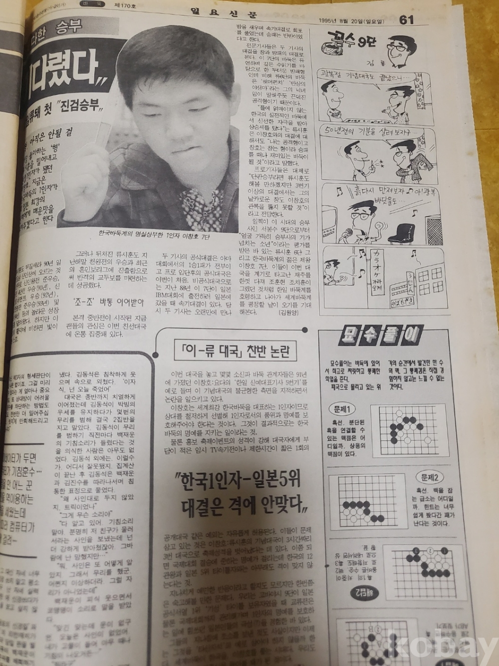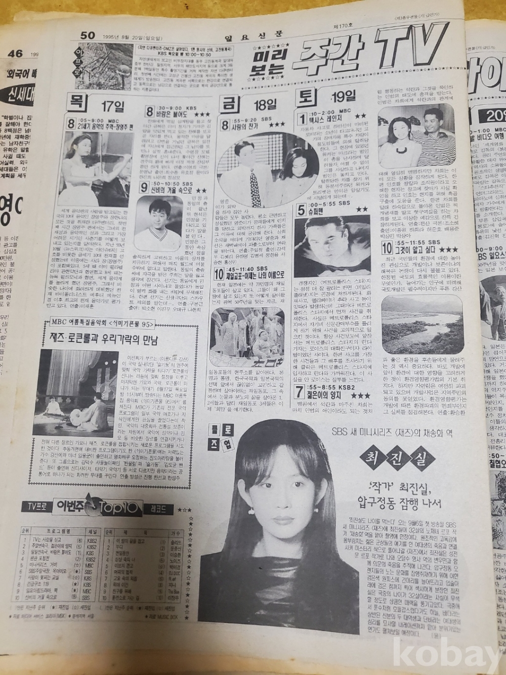 1. 일요신문 제170호(1995년 8월 20일), 일요신문사, 80쪽, 상태 상, 사진 참조