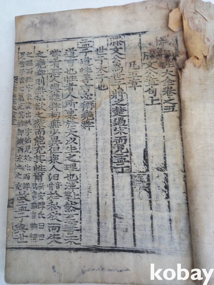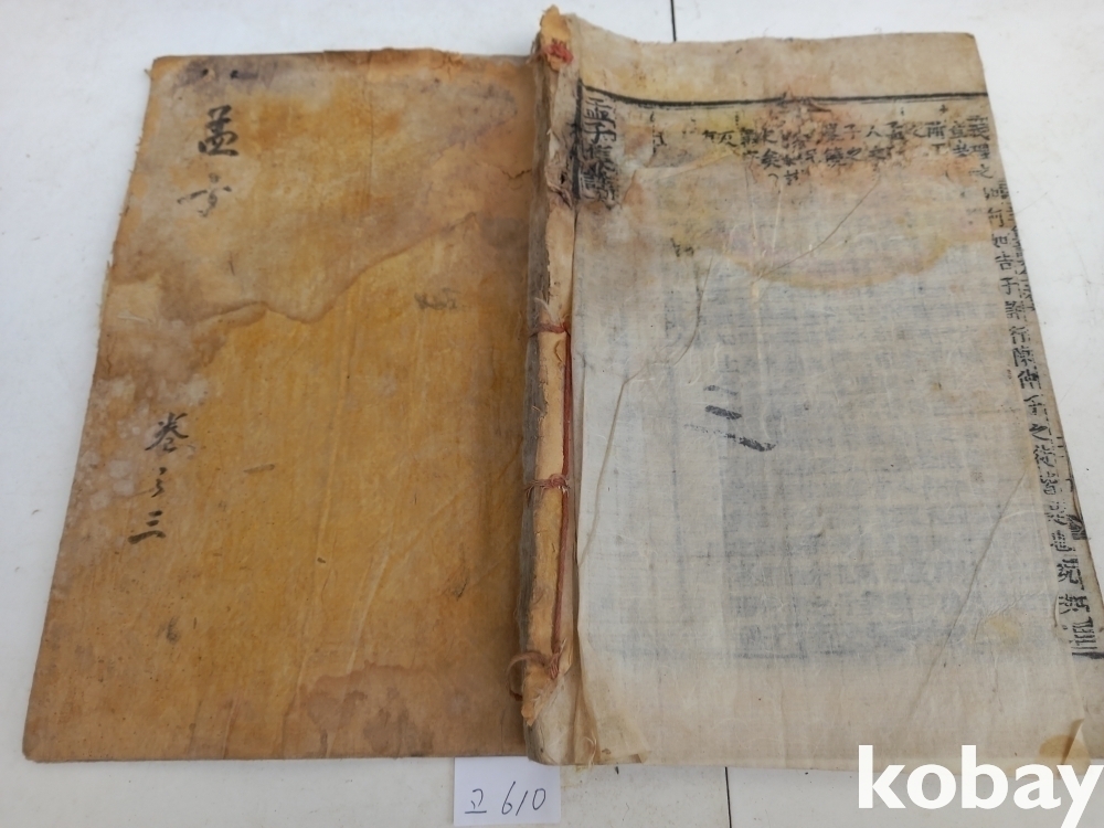 뒤표지 탈락, 우측 상단 얼룩과 헤어짐있음