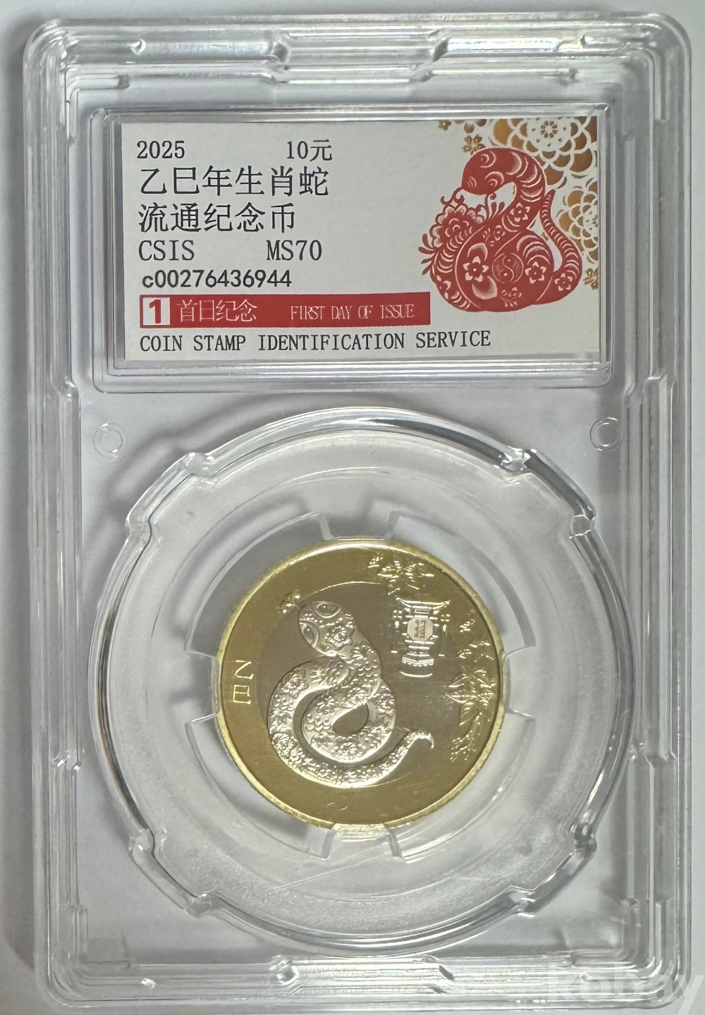 2025년 뱀의 해 기념 10위안 초판 MS 70