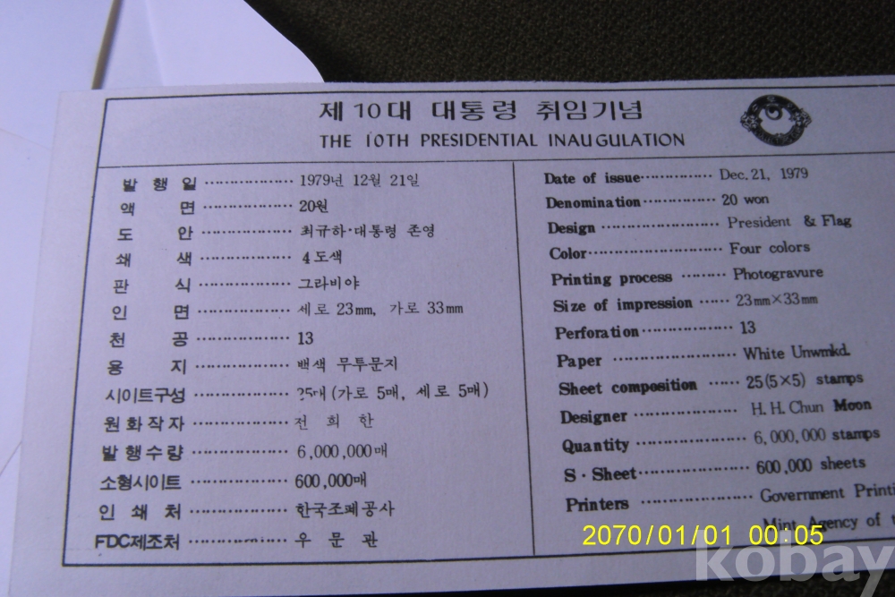 | 제조국 | 한국 | 연대 | 1960년~1979년 |