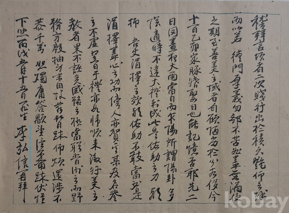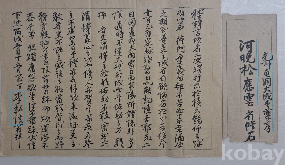 광주(光州) 용동(龍洞) 대성당약방(大成堂藥房) 만송(晩松) 하응운(河應雲)에게 보낸 간찰.