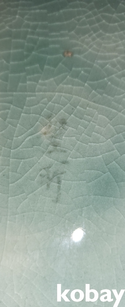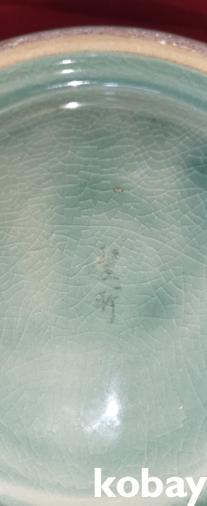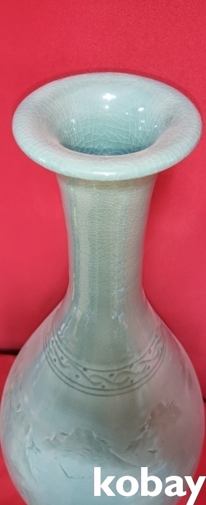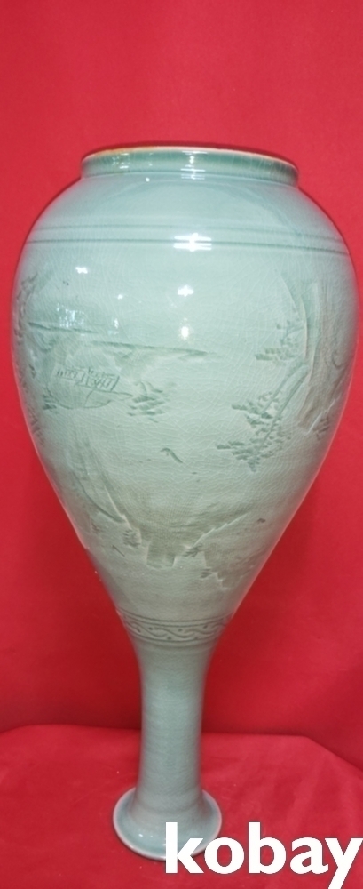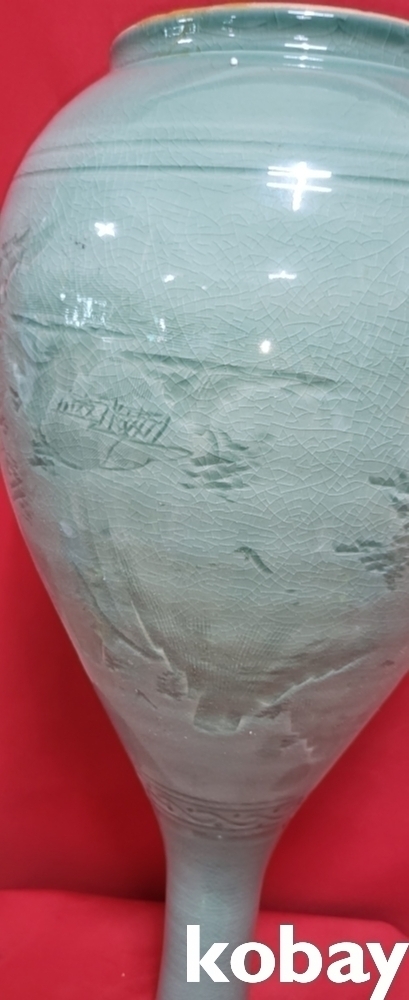 작가 사인이 보이는 청자 산수문 큰 대병(大壺)입니다,