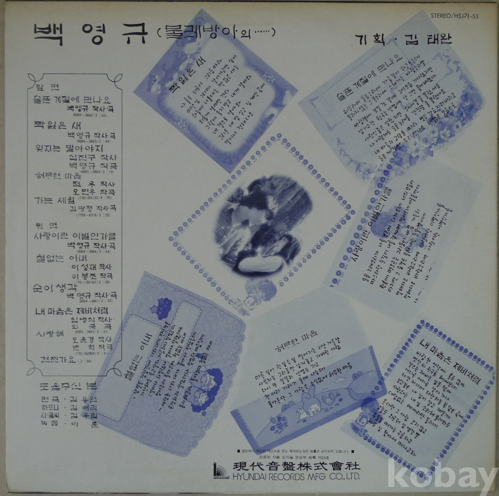 1980년 가수 백영규(물레방아의. . . .) 음반 LP