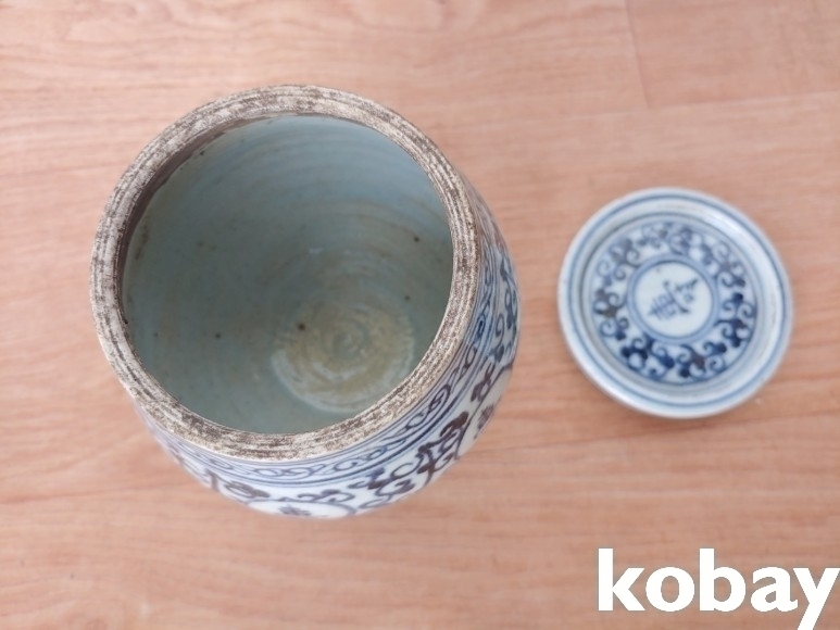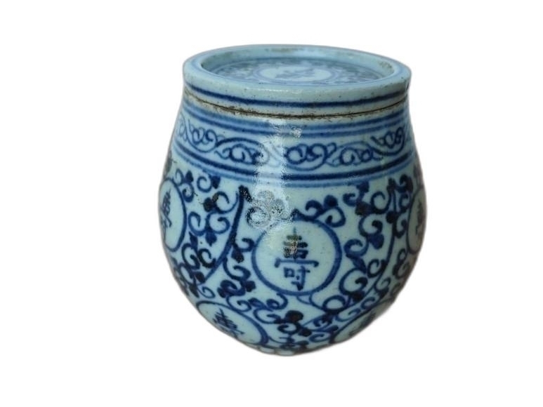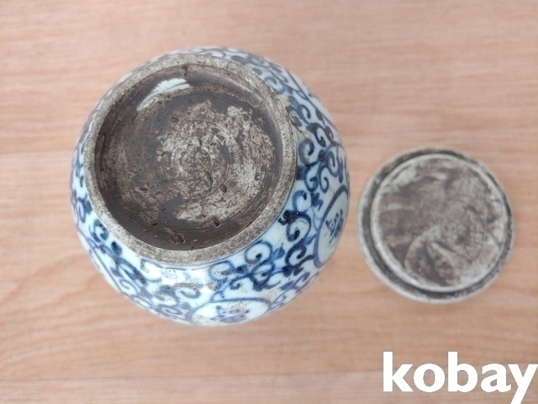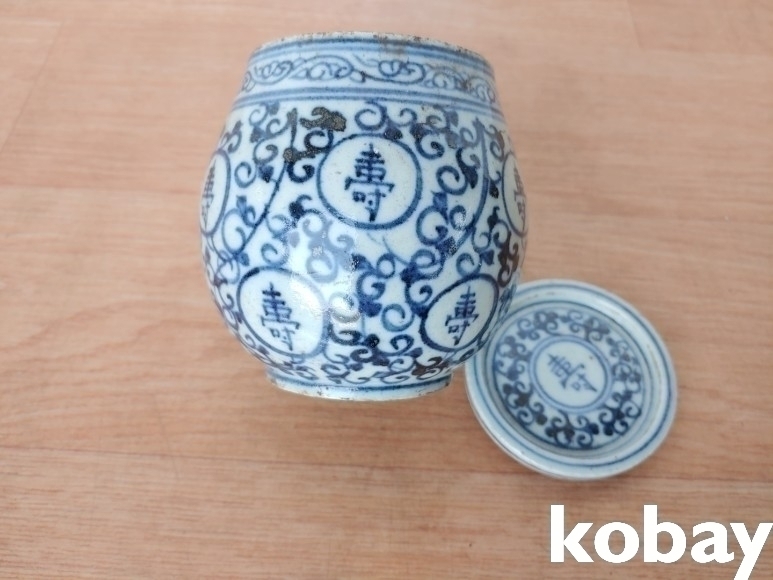 수 글씨가 있는 합/필새/찻통 도자기 입니다.