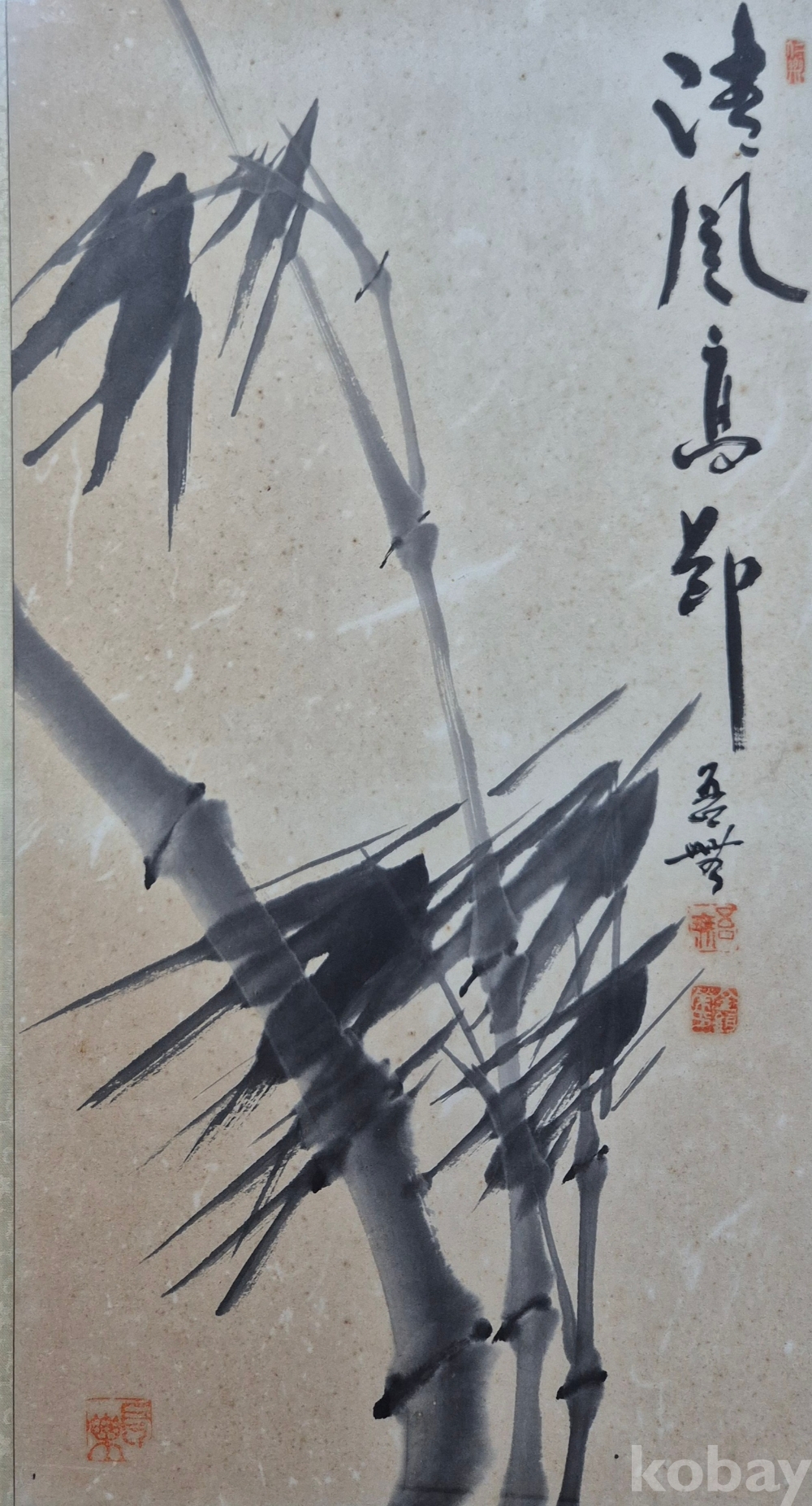 관동대 교수 역임하신 유명화가 김진영'화백님 잘 그려진 풍죽도'이오니 작품 이미지상 수결 및 낙관'등